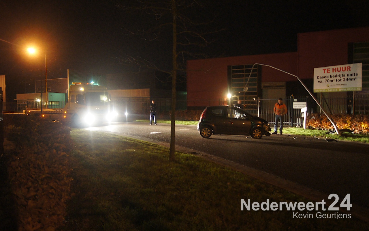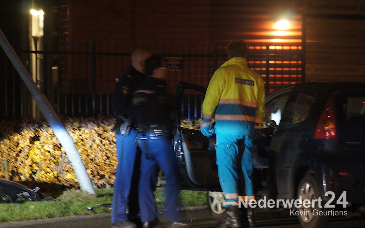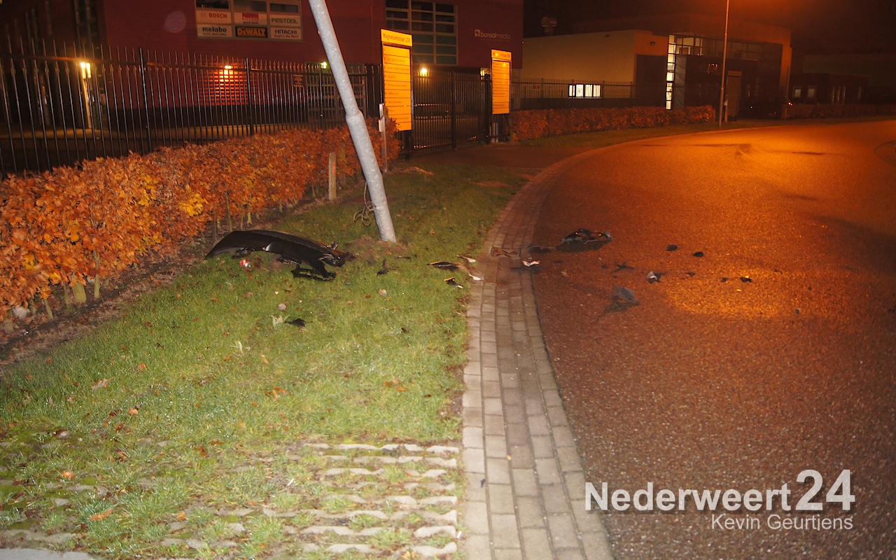 Vrijdagmorgen vroeg is een auto uit de bocht gevlogen op de Magnesiumstraat op industrieterrein de Pannenweg in Nederweert.