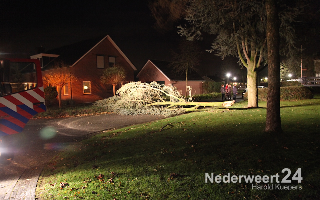 Een flinke stam is boven in de boom afgebroken en boven op een passerende auto terecht gekomen. De bestuurster van de auto is met de schrik vrij gekomen. De boom kwam boven op de motorkap terecht. Een gedeelte van de afgebroken tak heeft de zijraam van de auto vernield. Niemand raakte gewond maar de auto heeft wel flink wat schade opgelopen. De brandweer is ter plaatste geweest om de straat weer vrij te maken.