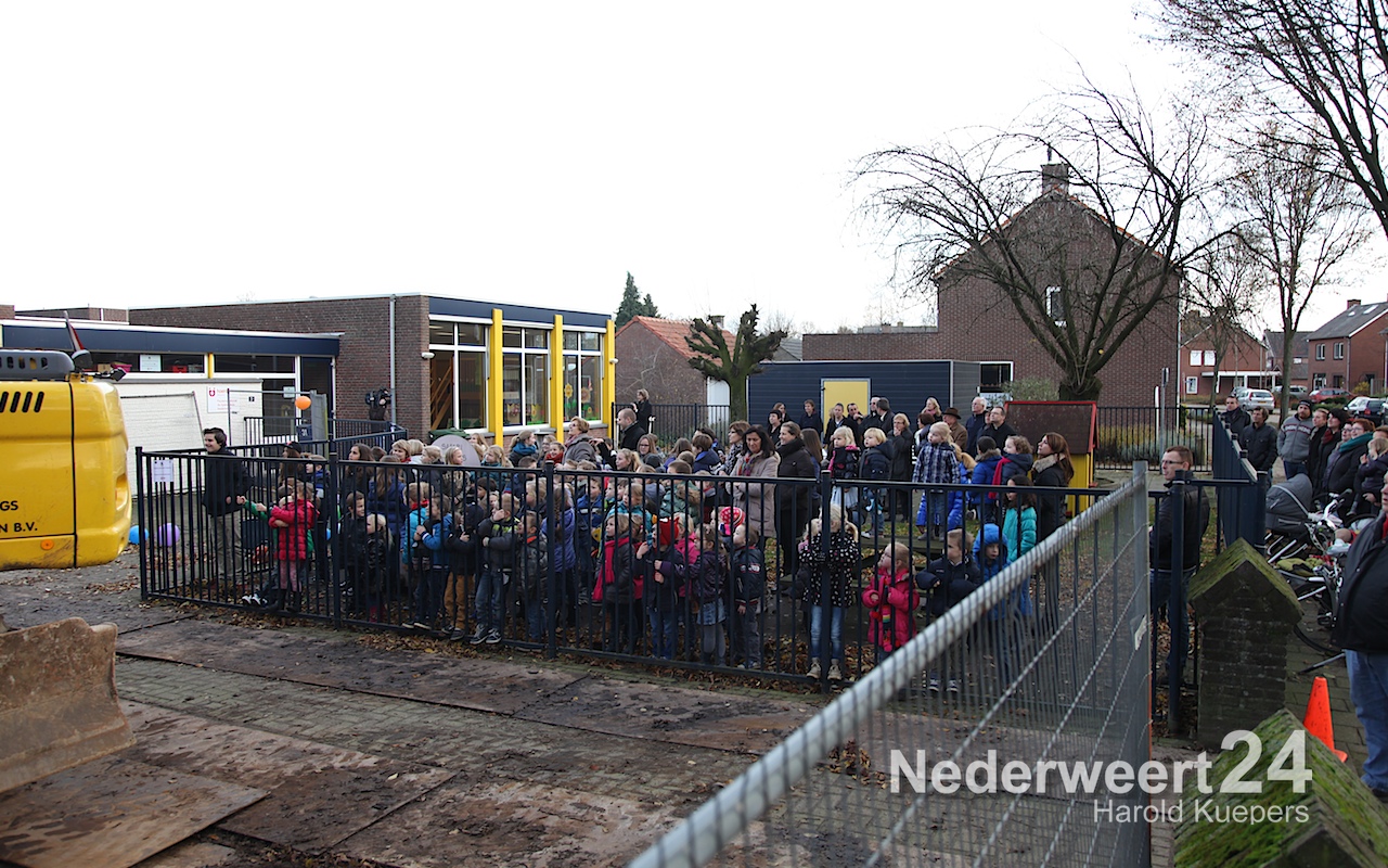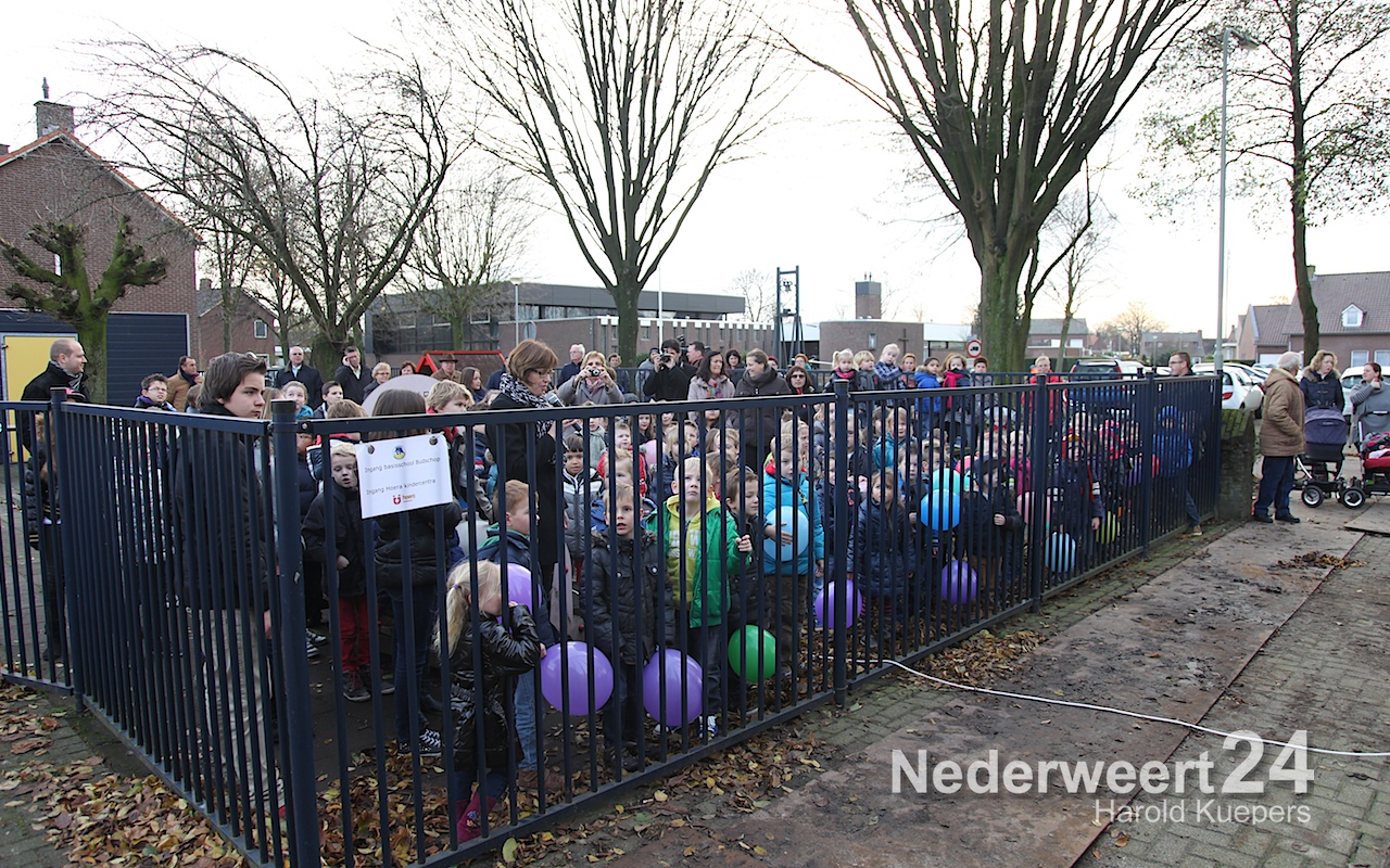 De kinderen mocht allemaal bij de start aanwezig zijn. Ze hadden zich verzameld op het peuterplein. Hier mochten ze het startsein geven door aan een touw te trekken waarmee een sloopkraan in beweging werd gezet. Er werden ballonnen opgelaten en natuurlijk was er warme chocolademelk en een heerlijk waffel. De verbouwing van Basisschool Budschop is officieel begonnen!