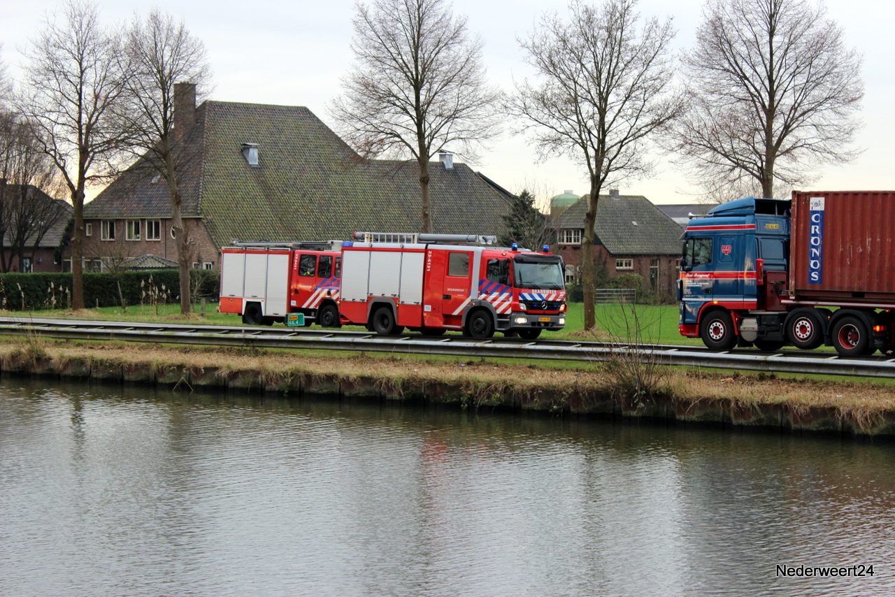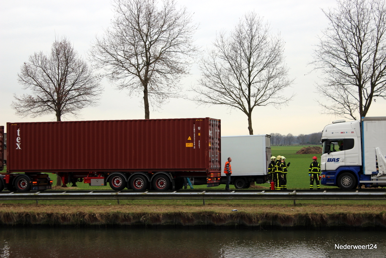 Ongeval WteringDinsdagmorgen even na half 11 werden ambulance en brandweer gealarmeerd voor een ongeval aan de Wetering in Nederweert. Twee vrachtwagens waren met elkaar in botsing gekomen. Door de klap sneuvelden van beide voertuigen de spiegels en de ruiten aan de chauffeurs kant. Een bestuurder van de vrachtwagen liep daarbij snijwonden op en werd door het ambulance personeel behandeld.