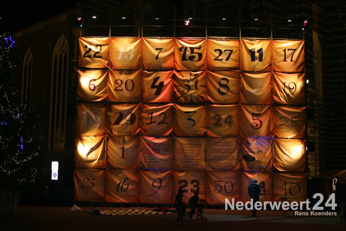 December Kalender Weert is een levensgrote kalender op de Markt waarvan elke dag een vakje opent. Achter de vakjes staat vervolgens divers entertainment, elke dag een andere verrassing. Op maandag, dinsdag en vrijdag begint de act om 17:00 uur, op donderdag om 19:00 uur en op woensdag en in het weekend om 14:00 uur. Tijdens de feestdagen zijn er enkele uitzonderingen in de aanvangstijden. De nog volgende dagen zullen weer een gevarieerde invulling krijgen.