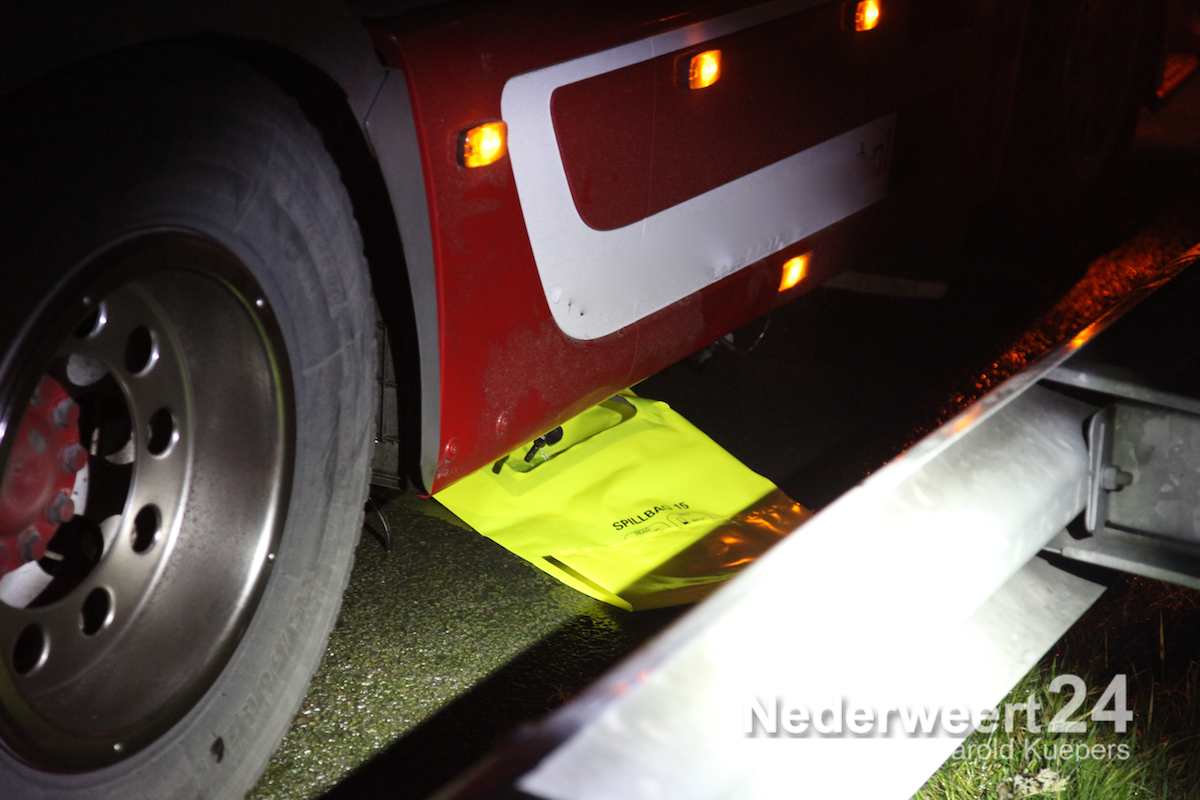 Vrachtwagen heeft kapotte dieseltank op A2 bij NederweertDonderdagavond rond kwart over acht is er een vrachtwagen met een lekkende dieseltank gestrand op de A2 tussen afslag Weert Noord en Nederweert.