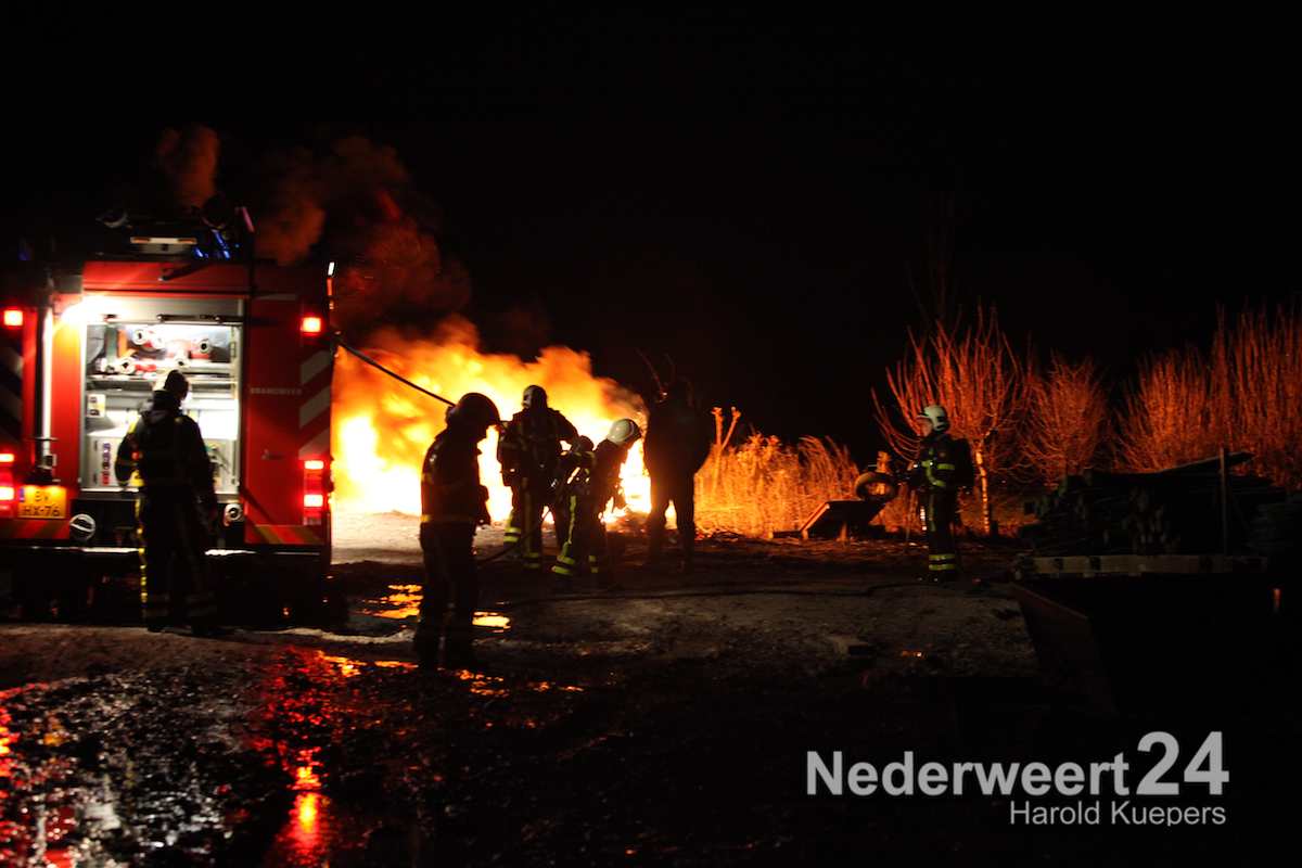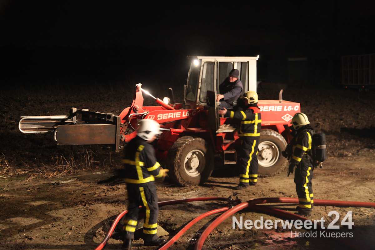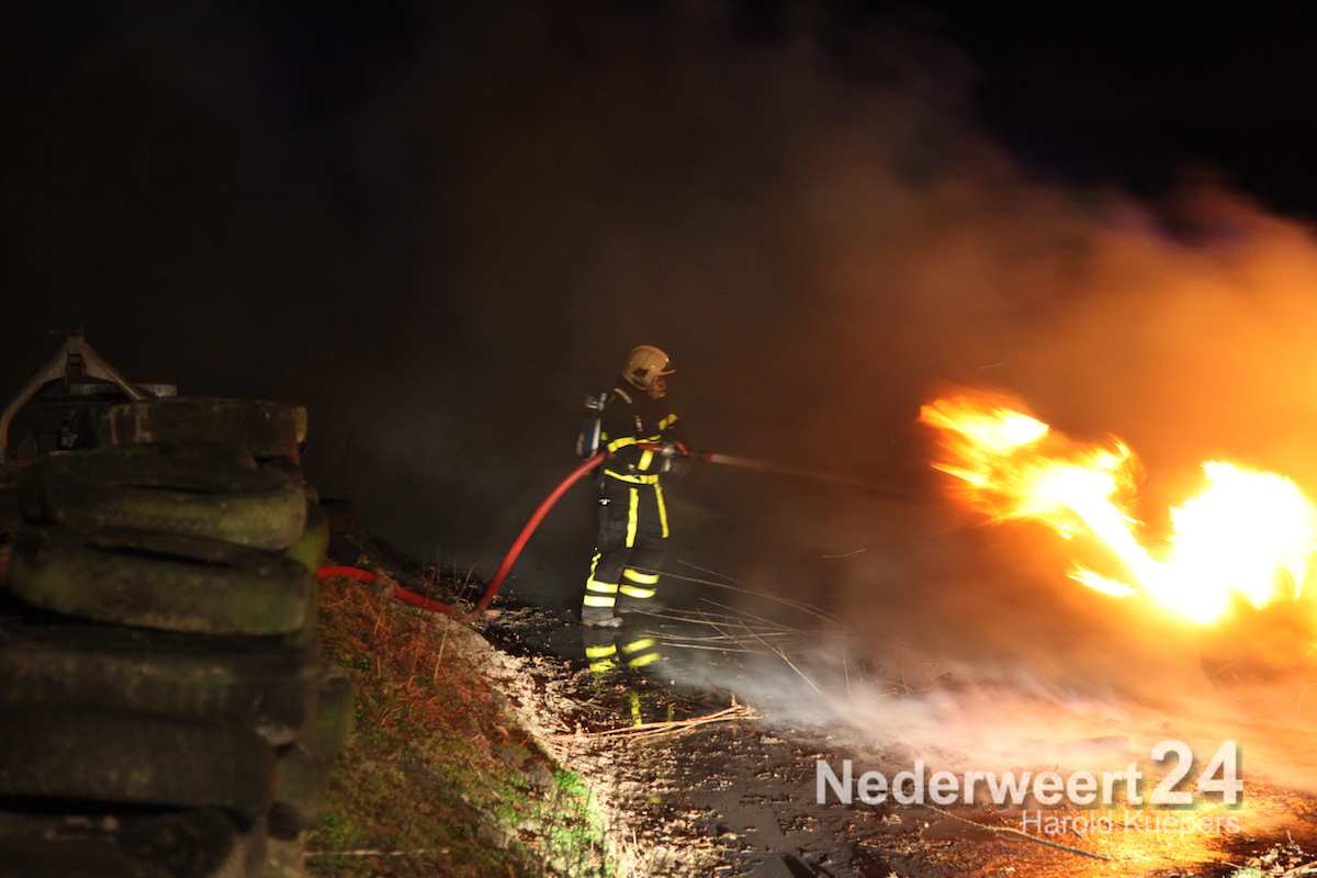 De brandweer van Nederweert kreeg assistentie van de waterwagen uit weert. Het ergste vuur hadden ze snel onder controle. Het nablussen zal nog enige tijd in beslag nemen.