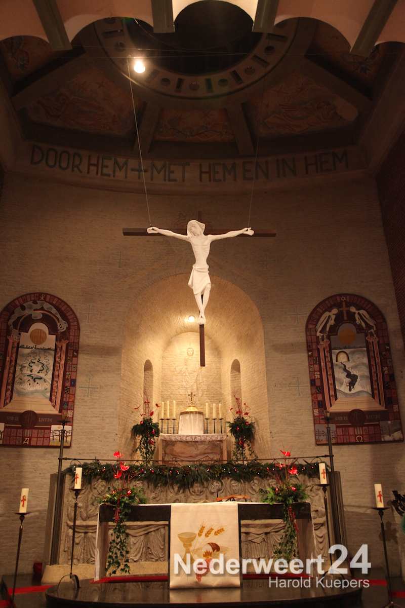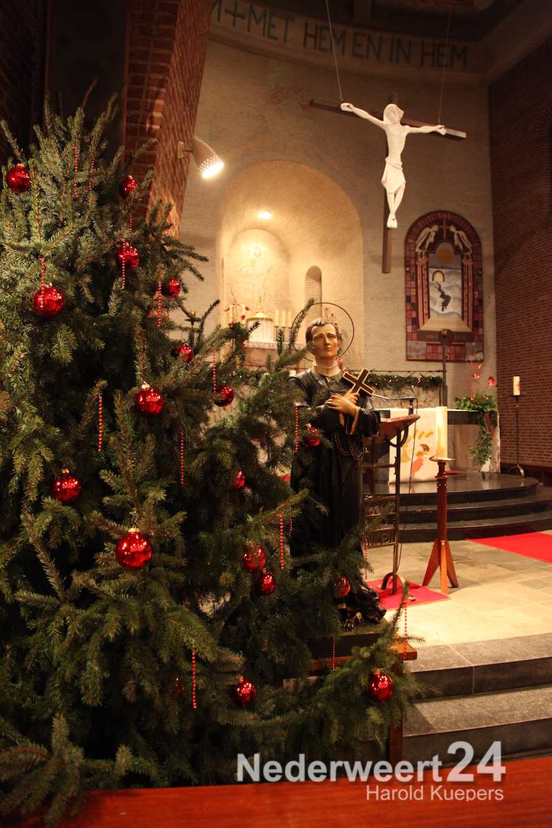 De Gerardus-Majella kerk in Nederweert is zondagavond in kerstsferen gebracht door drie vrijwilligers die dit al jaren met veel plezier en passie doen. André Bongers, Driena van Heugten en Mario van Horik hebben zondagavond de kerk in het groen gestoken. Het altaar is omgetoverd tot één groot kerststuk.