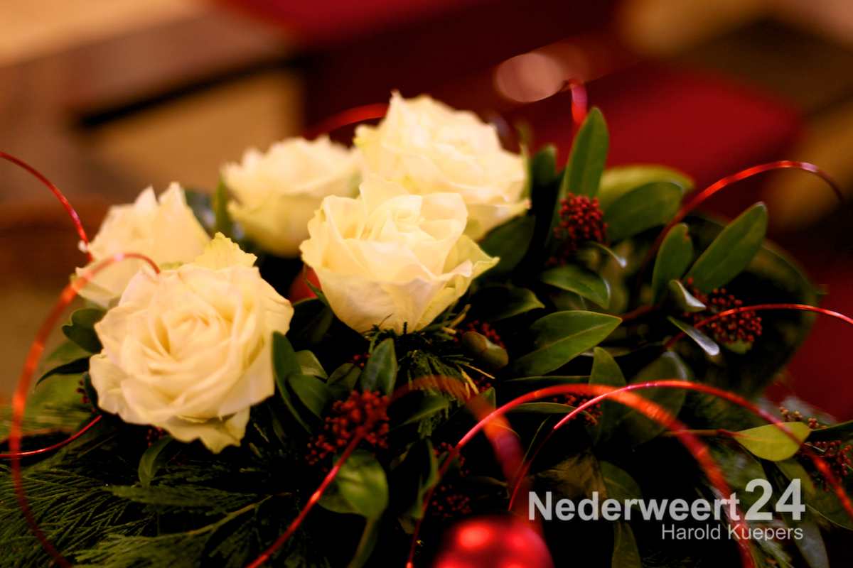 Riek Op ’t Root zorgt al meer dan 25 jaar voor prachtige bloemstukken in de kerk van Ospel. Met Kerst wordt altijd groots uitgepakt. Samen met Nellie Briels, die ook al 20 jaar mee helpt, hebben ze ook dit jaar weer voor een gezellige kerstsfeer gezorgd.