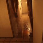 Eerder vandaag was het dakleer van het dak los geraakt door de storm. Dakdekkers hadden tot laat in de middag een poging gedaan dit te repareren. Door de hevige regenval is, ondanks de reparatie, in het hele huis waterschade ontstaan. De vloeren staan blank en de meeste lampen in huis zijn inmiddels door kortsluiting kapot gesprongen.