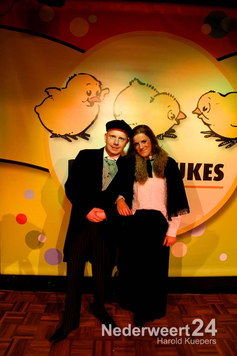van Tiny van Klompe Zef gedompelt-j in wiewater als Hubertina Maria Catharina en van Graat, dae altied mot loestere nao los mam: Erwin Wijnen.Het thema van de Boerenbruiloft 2014 is: Rood, Gael en Greun.