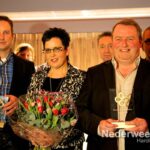 Anjes Bergh uit Nederweert, eigenaresse van De Toverbal, voetbalvereniging R.K.S.V. Merefeldia Nederweert en de Percussiegroep van Fanfare Concordia Leveroy hebben vrijdagavond tijdens de Nieuwjaarsreceptie het Gemeentecompliment 2014 in ontvangst genomen tijdens een druk bezochte nieuwjaarsreceptie in het gemeentehuis van Nederweert.