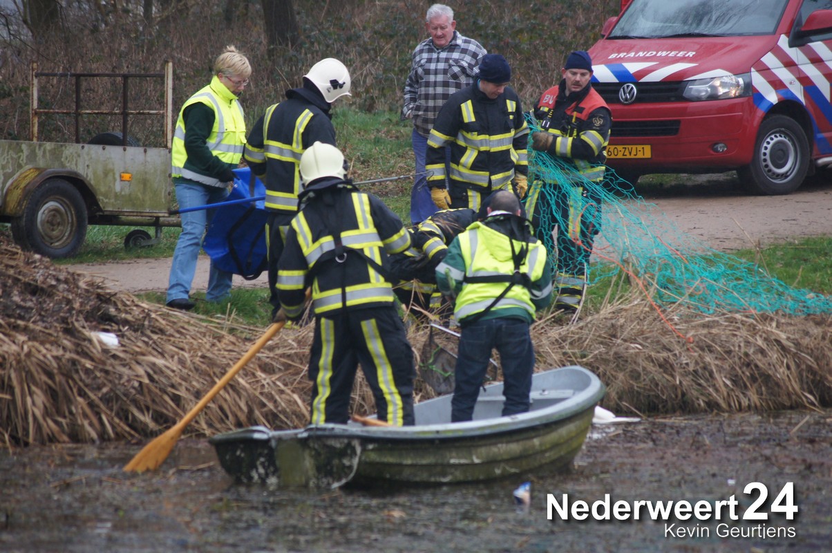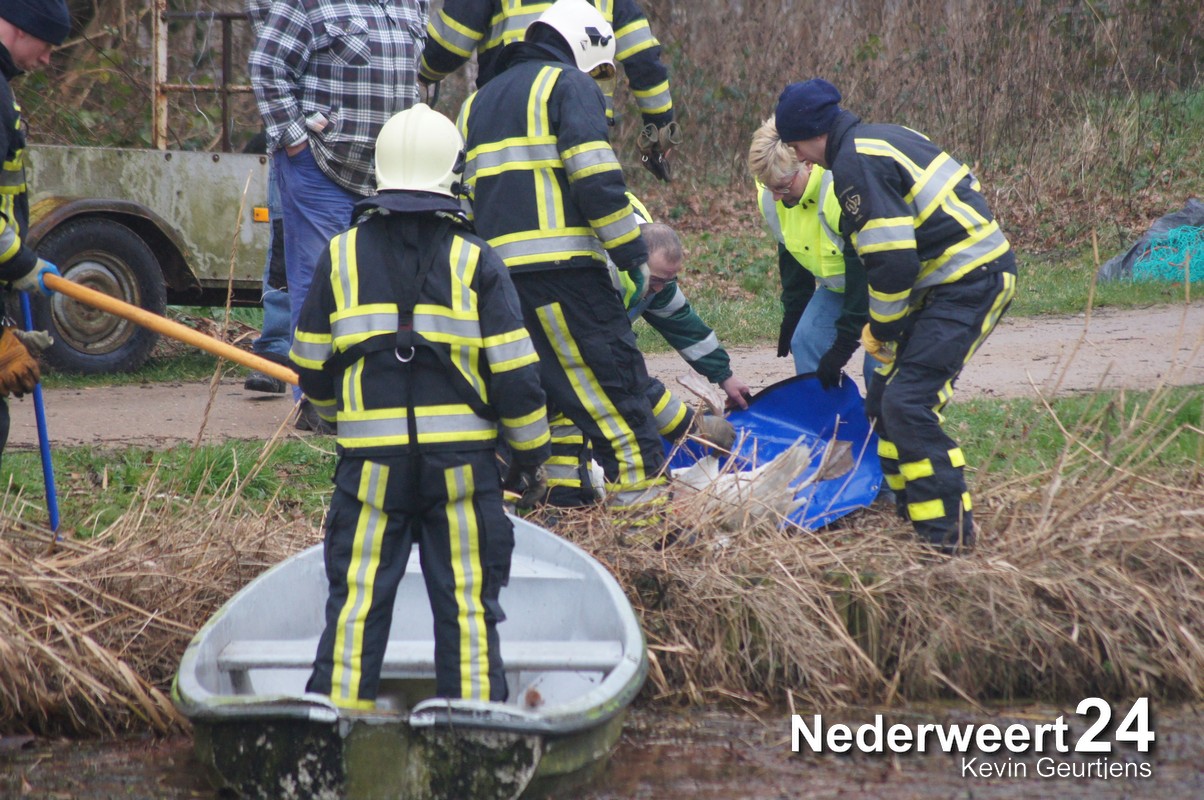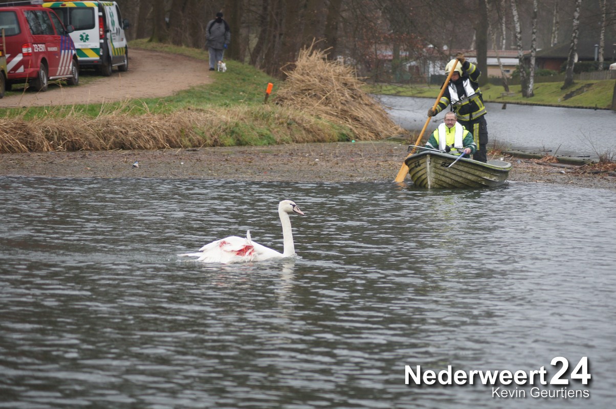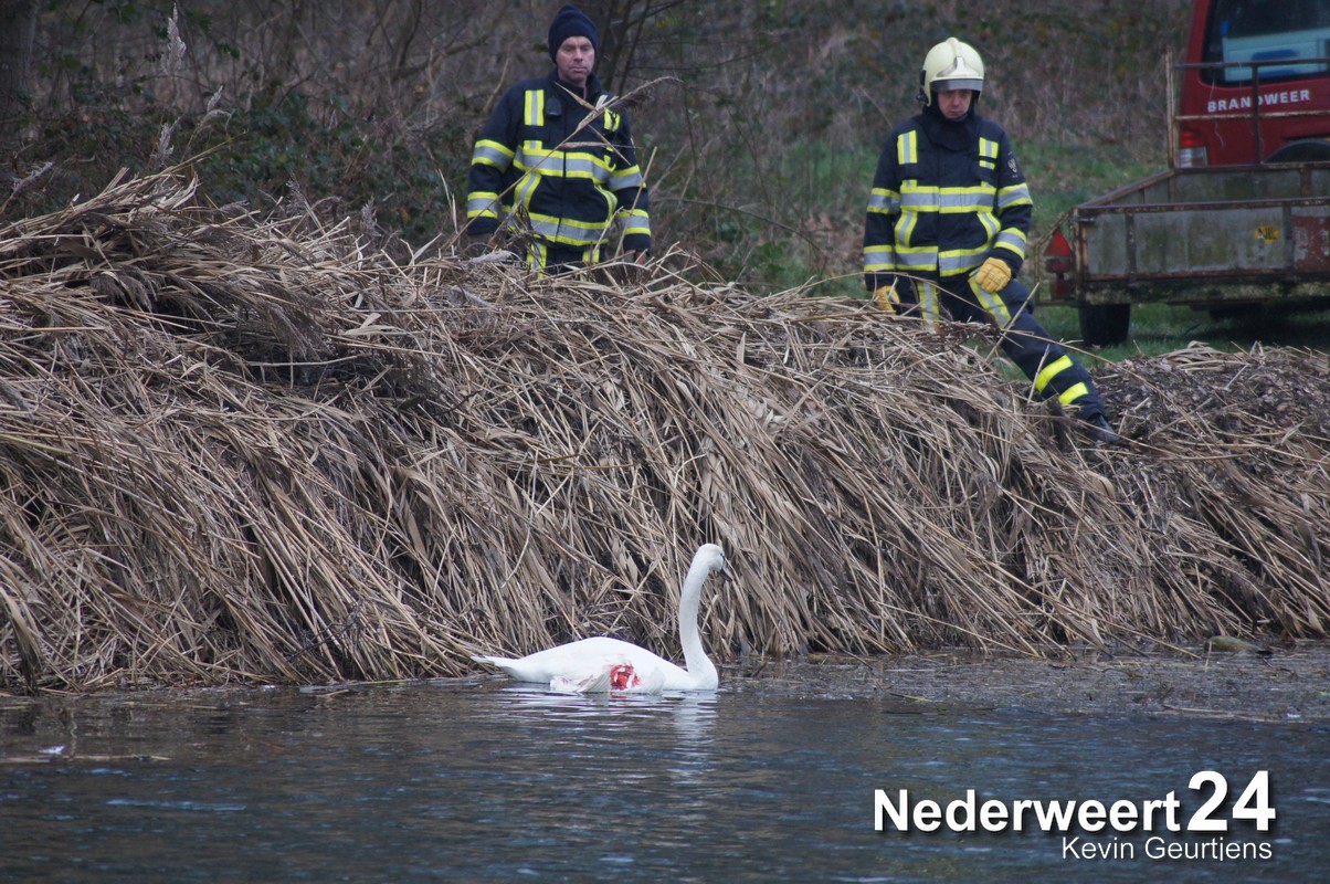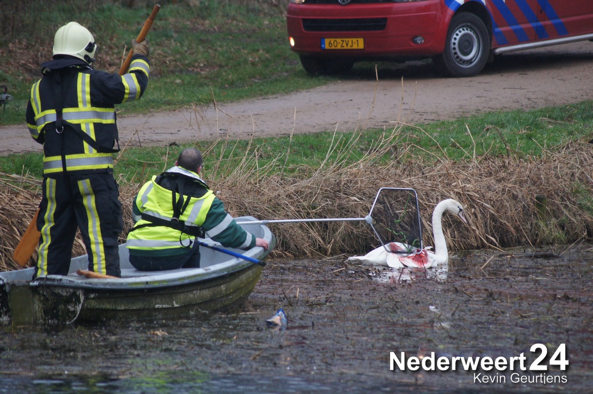 Vanmiddag is er een zwaan aangereden op de Kanaaldijk in Meijel. De zwaan kwam na de aanrijding terecht in de Noordervaart. Een brandweerman ging samen met een vrijwilliger van de dierenambulance per boot de Noordervaart op om het dier te vangen.