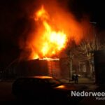 Update: 01.20 uur Het blijkt niet om een tussenwoning te gaan maar om een loods. In de loods stonden auto’s.