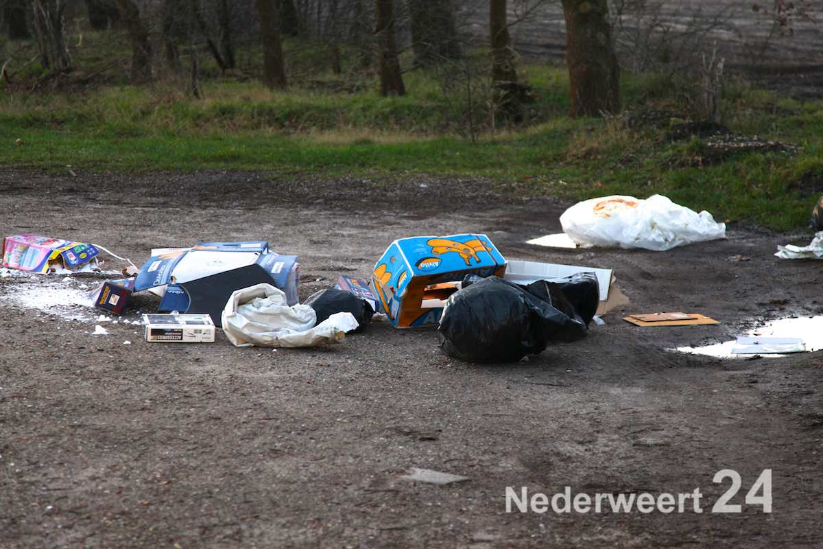 Vanmorgen heeft een voorbijganger melding gedaan van een partij afval aan de kant van de weg aan de Wessemerdijk in Nederweert ter hoogte van het “homo bosje”, net voor de Spoorbrug.