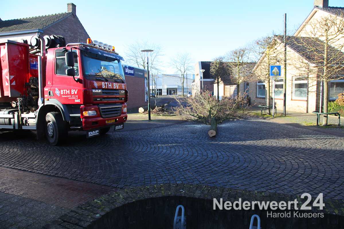 Vanmorgen is begonnen met de eerste voorbereidingen voor de herinrichting van de Kerkstraat in Nederweert. Vanaf het Horecaplein tot aan het Lambertushof zijn links en rechts van de weg verschillende bomen gerooid.