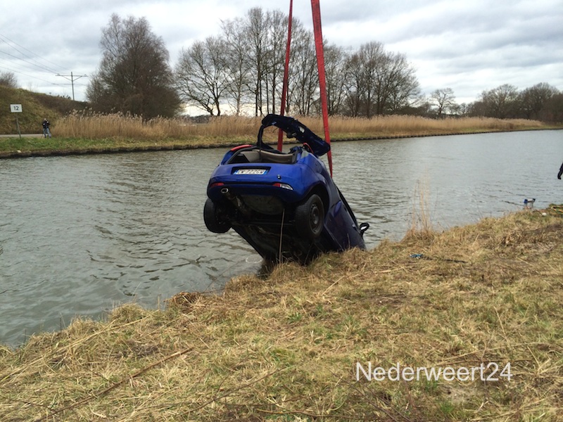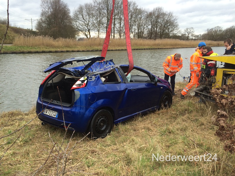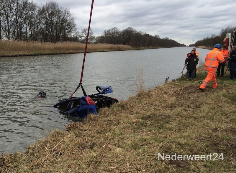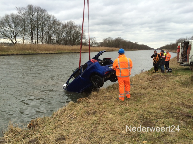 Auto uit kanaal (2) Op dit moment is Rijkswaterstaat bezig met het bergen van de autowrakken die het duikteam van de politie gisteren heeft onderzocht in het kanaal Wessem-Nederweert.