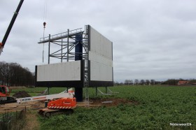 Donderdagmiddag zagen we bouwactiviteiten langs de A2 bij Nederweert. Uit nader onderzoek bleek dat er naast de snelweg een grote reclame mast gebouwd wordt. Van dicht bij bleek het om een wel erg grote mast te gaan. De reclame mast wordt gebouwd in opdracht van Interbest BV uit Breda.