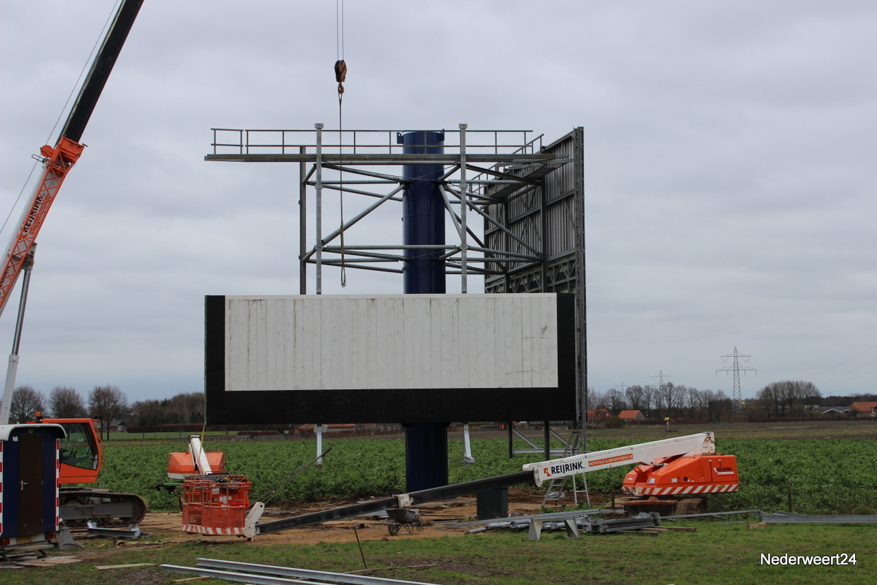 Volgens een woordvoerder van de gemeente Nederweert is er in juni 2012 al een vergunning afgegeven voor de bouw van deze mast. Interbest BV noemt zich marktleider in snelwegreclame. Welke reclame er op de borden komt kon de woordvoerder van de gemeente ons niet vertellen. Volgens hem ligt de exploitatie van dergelijke masten bij Interbest BV zelf.