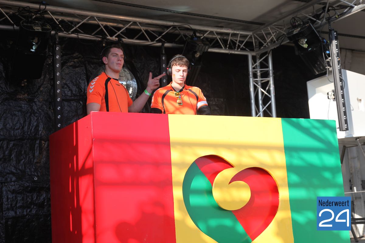 Onder aanvoering van de klanken van de diverse dj’s werd er onder de groene parachute gedeind tot een heel eind in de avond. Als afsluiter van de dag was er een optreden van “Blended” met de twee dj’s Dennis Verheijen en Robin van der Linden uit Nederweert.