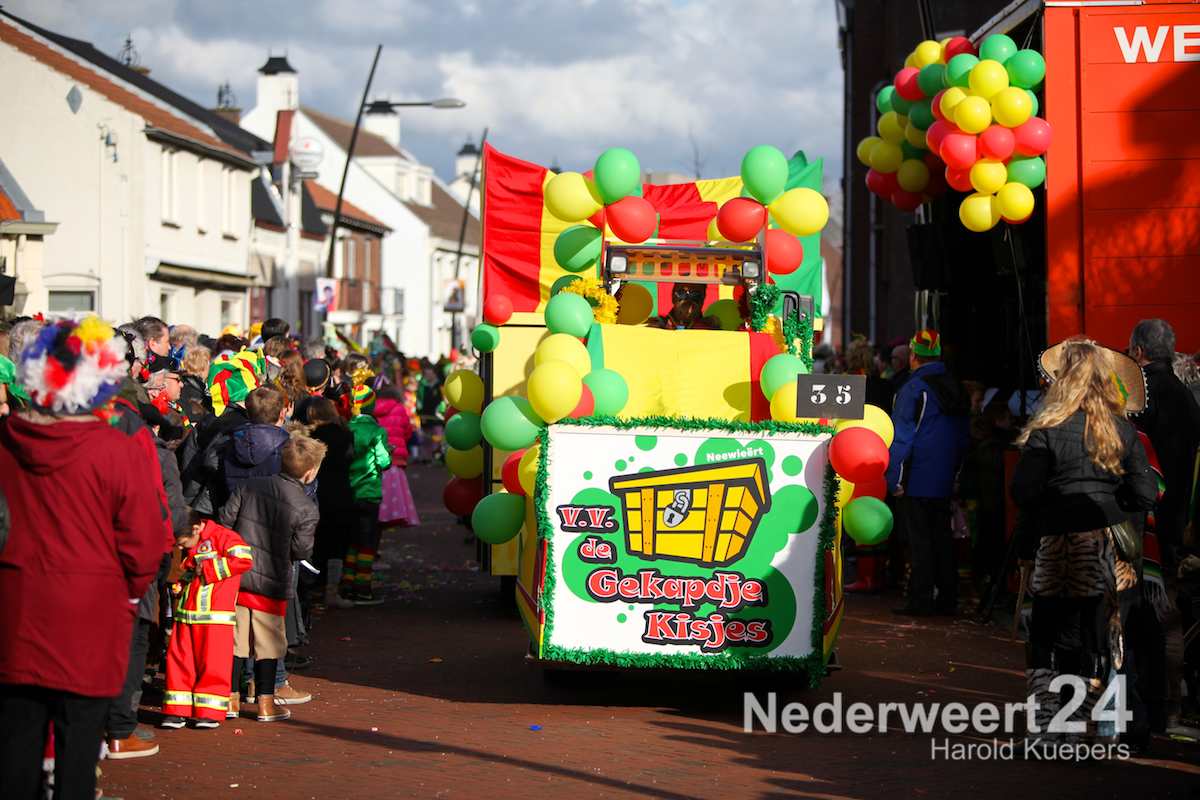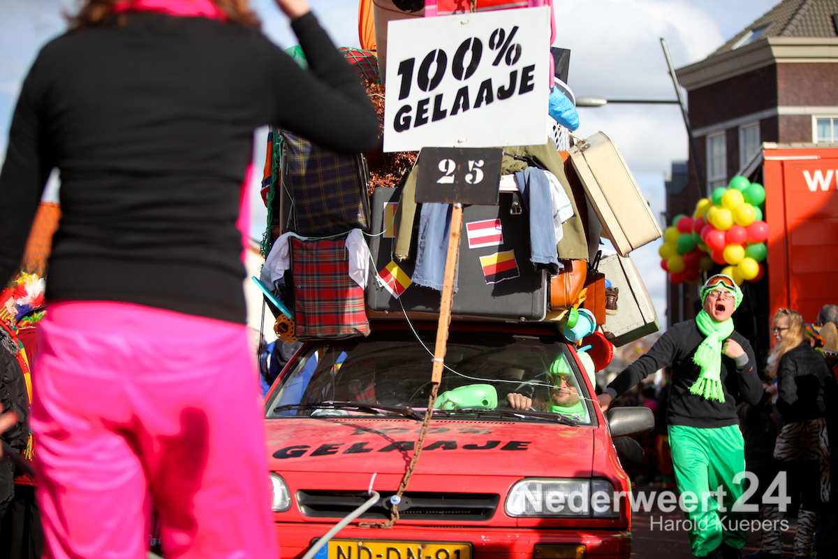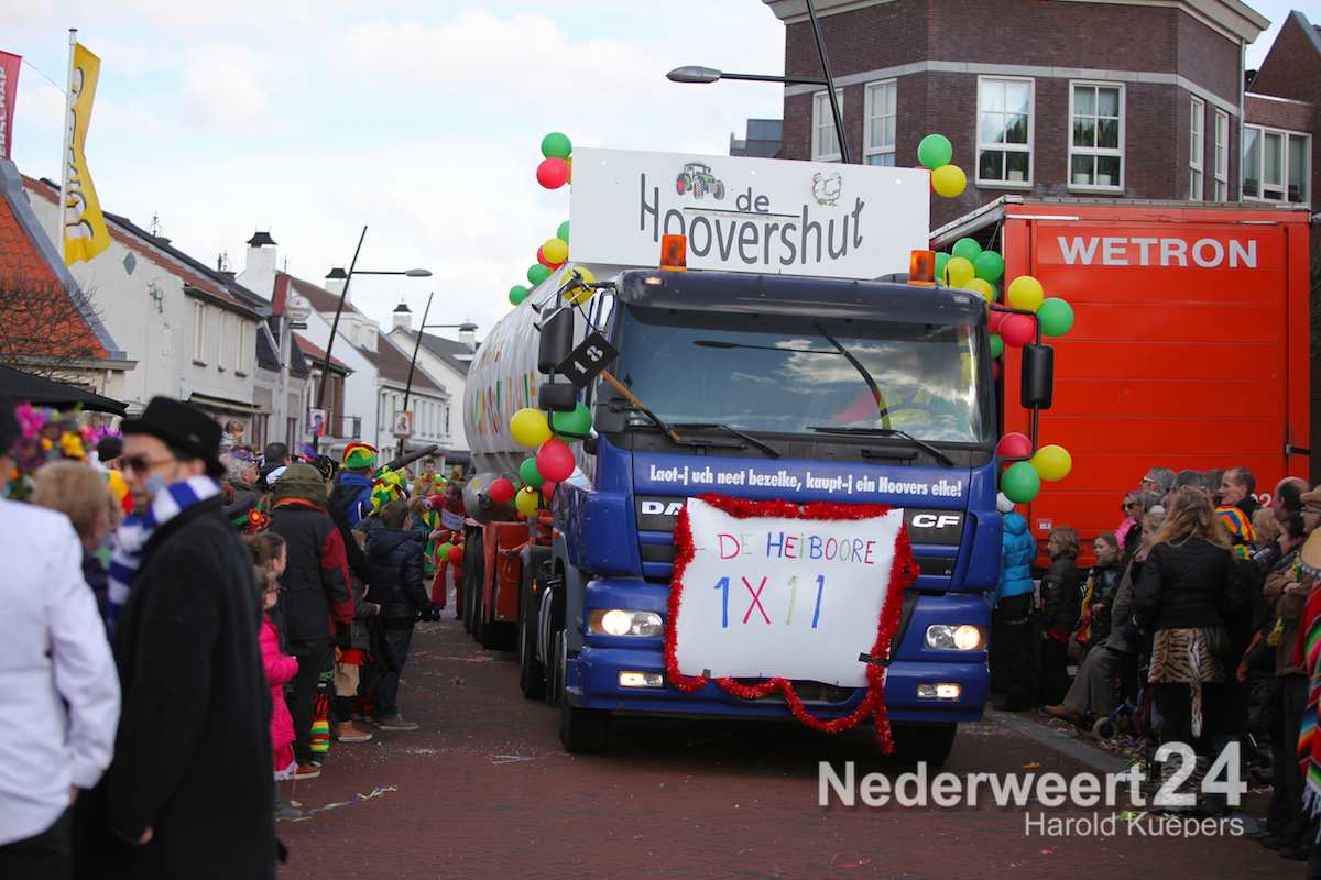 Dit jaar deden 42 wagens mee. Rudi Veltrop heeft op het Horecaplein in Nederweert verslag gedaan van de verschillende wagens. Direct na afloop van de optocht zal de band D’n Dent Revival Bend een eerste set van drie erin gooien. In de loop van de middag zullen er nog verschillende artiesten het podium bestijgen om te zorgen voor een gezellige middagje op het plein.