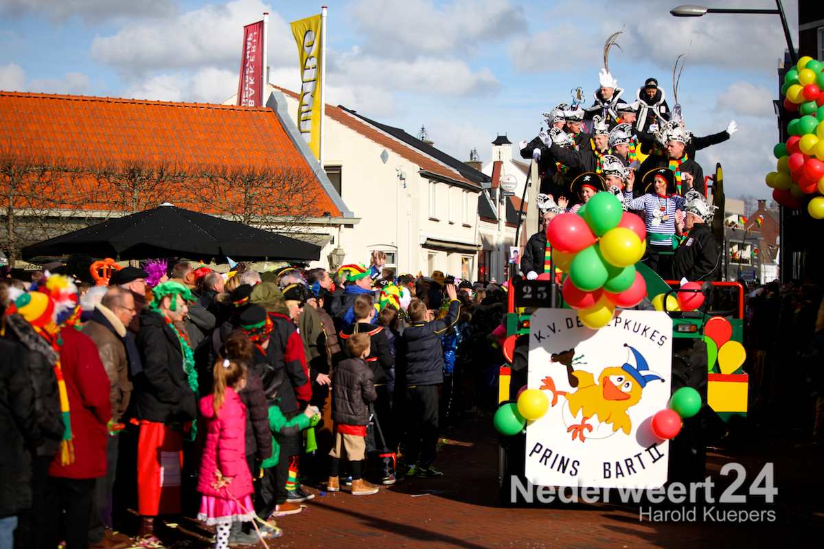 Maandagmiddag was de grote carnavalsoptocht van VV de Pinmaekers in Nederweert. Het was prachtig weer en de mensen stonden rijen dik langs de route om te genieten van de kleurrijke optocht.