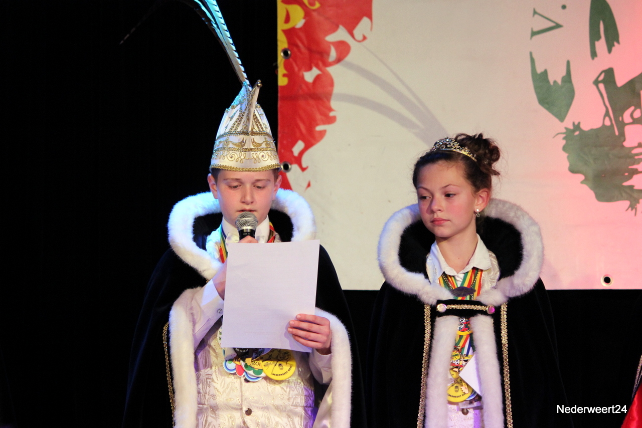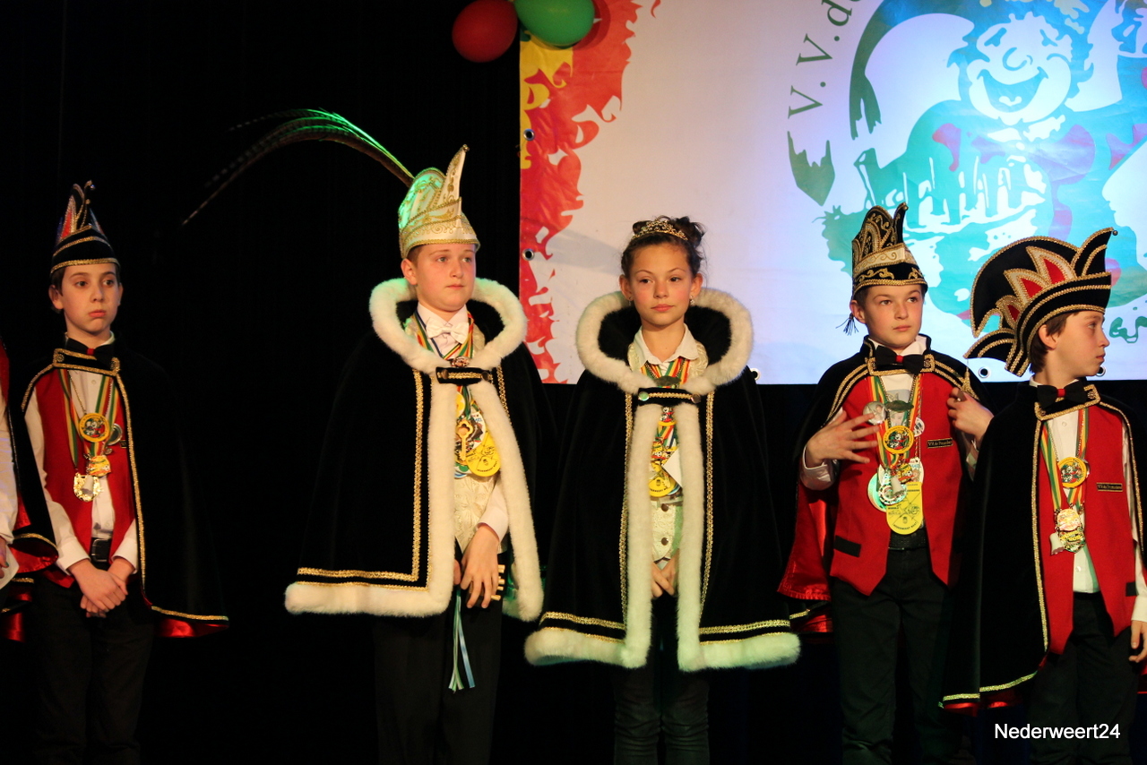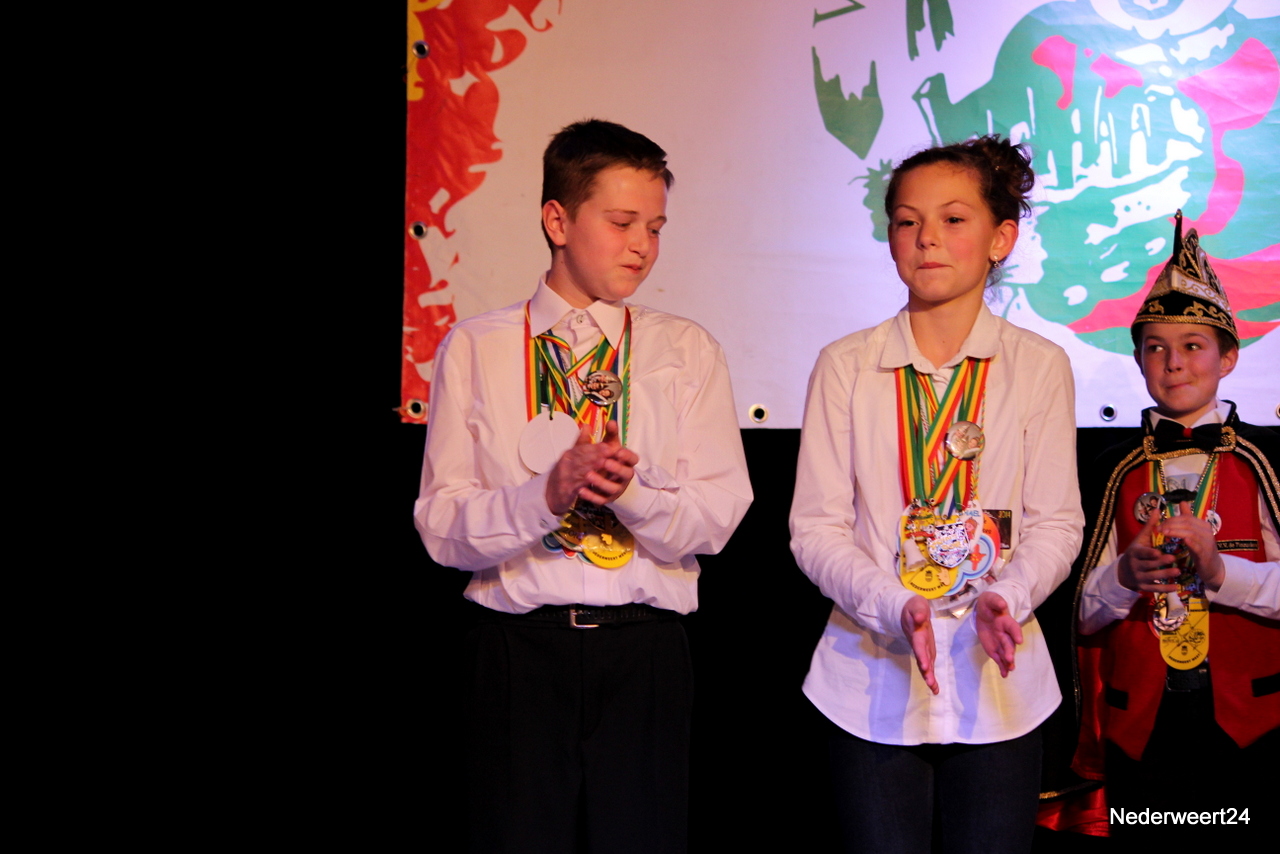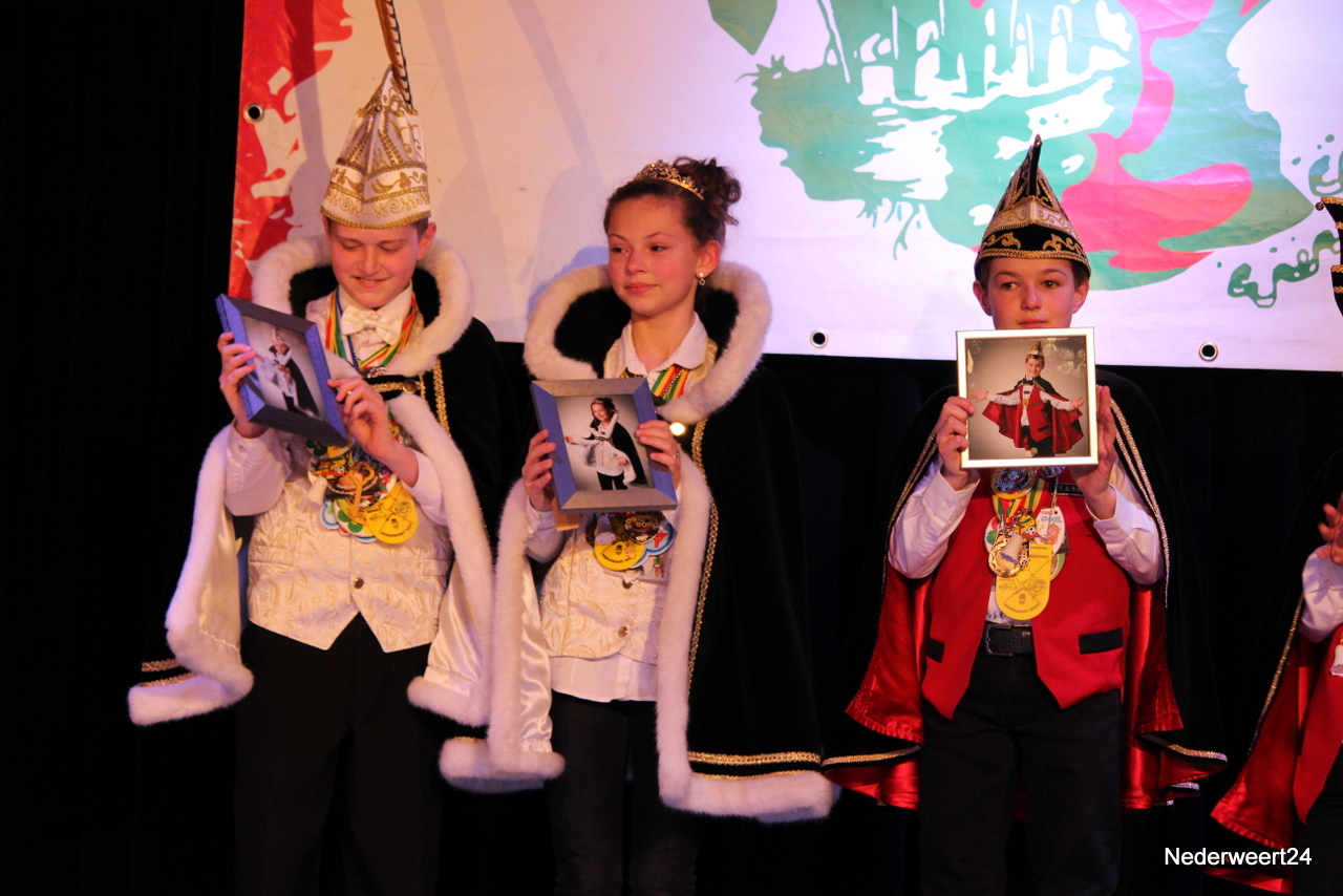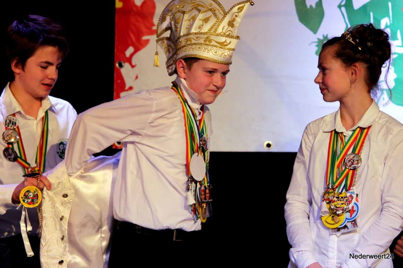 Op ludieke wijze werden daarna achtereenvolgens de mantel, de medailles en hesjes en daarna de steek en het kroontje ingeleverd. Vanaf toen was het weer gewoon Tim en Charlotte. Zij en hun adjudant kregen een leuk cadeautje aangeboden waarna er toch weer een glimlach op de gezichtjes verscheen. Nog even springen op lekkere moderne muziek en de pijn was alweer vergeten. Tim en Charlotte kunnen terugkijken op een super geslaagd seizoen waaraan ze nog vaak zullen terug denken.