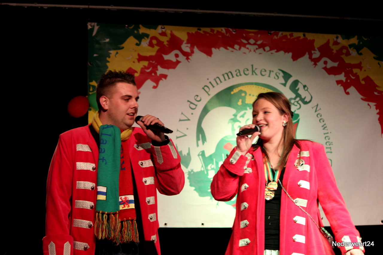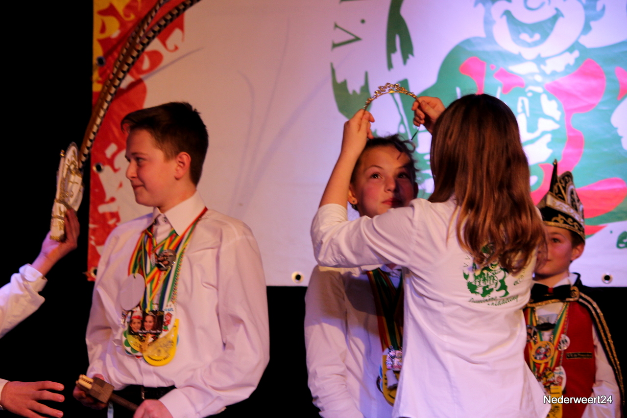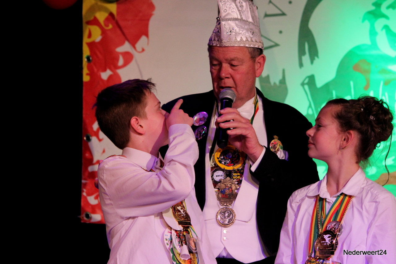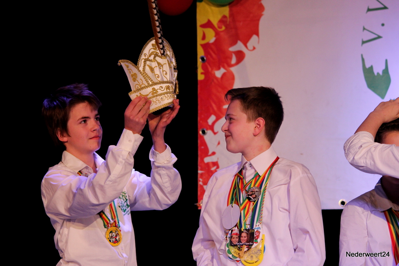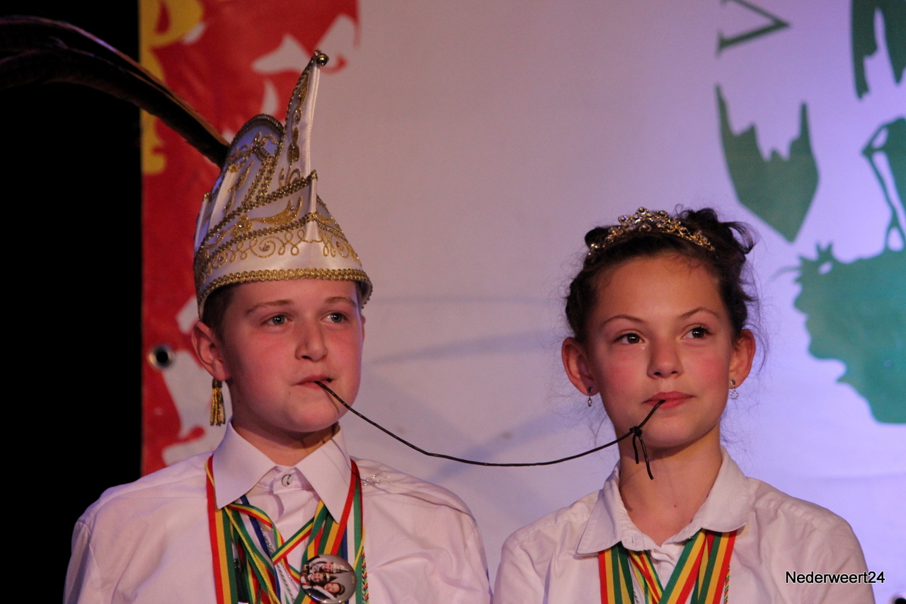 Op ludieke wijze werden daarna achtereenvolgens de mantel, de medailles en hesjes en daarna de steek en het kroontje ingeleverd. Vanaf toen was het weer gewoon Tim en Charlotte. Zij en hun adjudant kregen een leuk cadeautje aangeboden waarna er toch weer een glimlach op de gezichtjes verscheen. Nog even springen op lekkere moderne muziek en de pijn was alweer vergeten. Tim en Charlotte kunnen terugkijken op een super geslaagd seizoen waaraan ze nog vaak zullen terug denken.