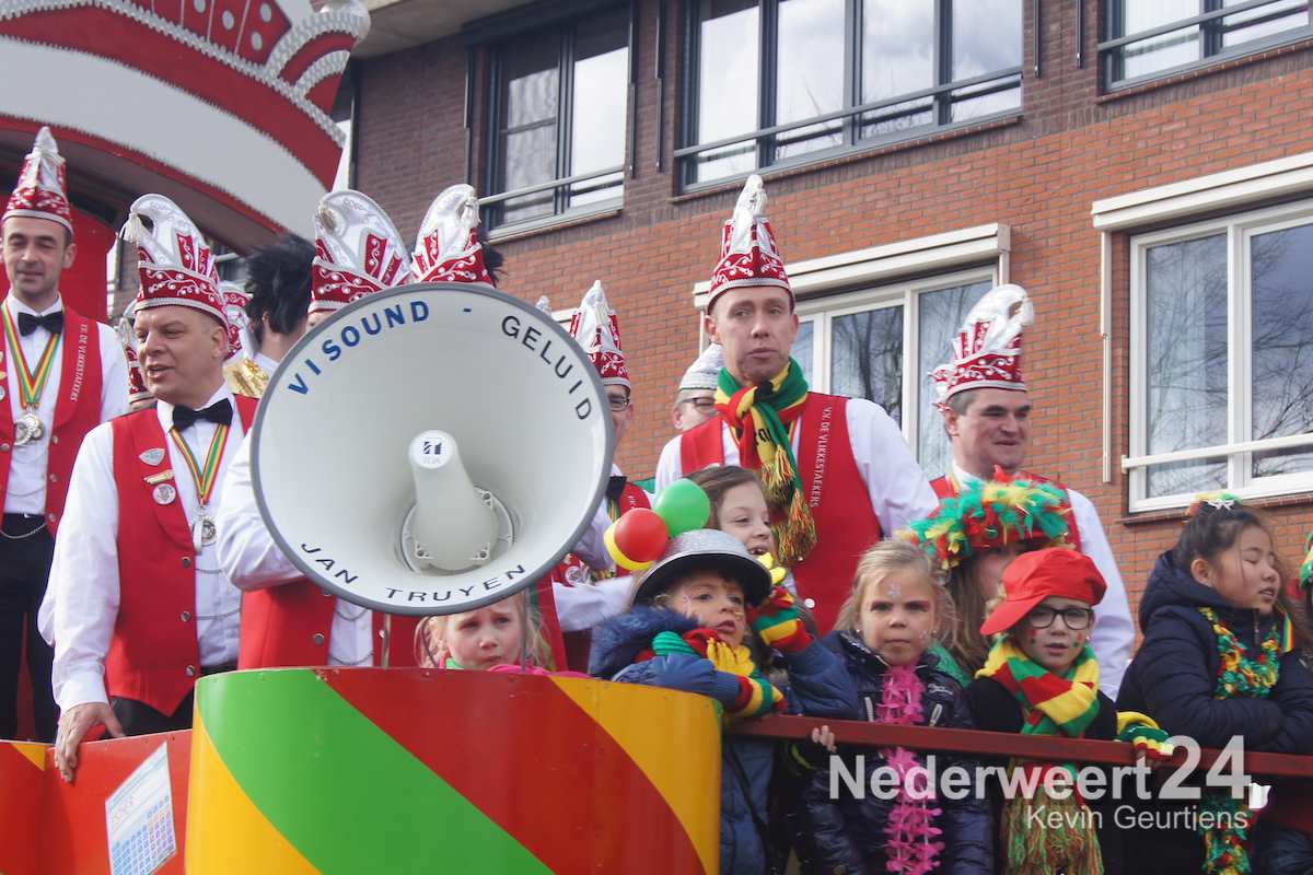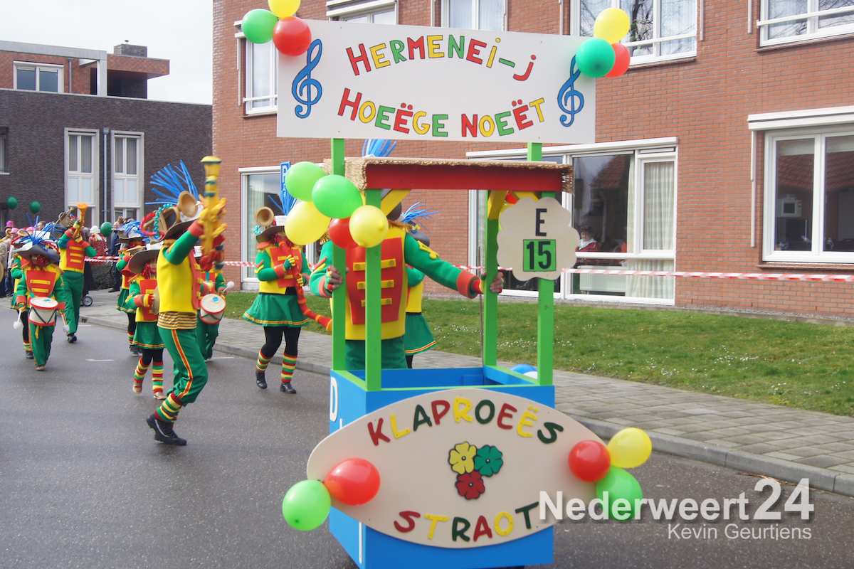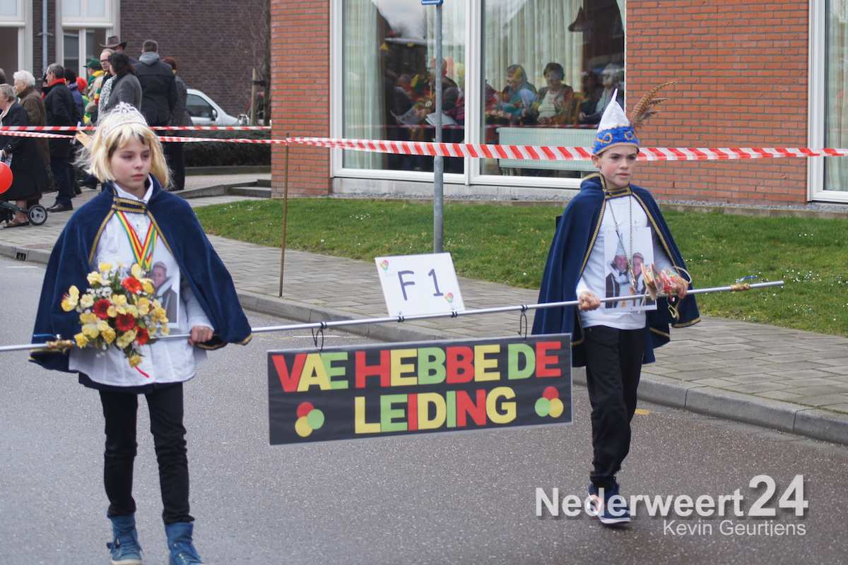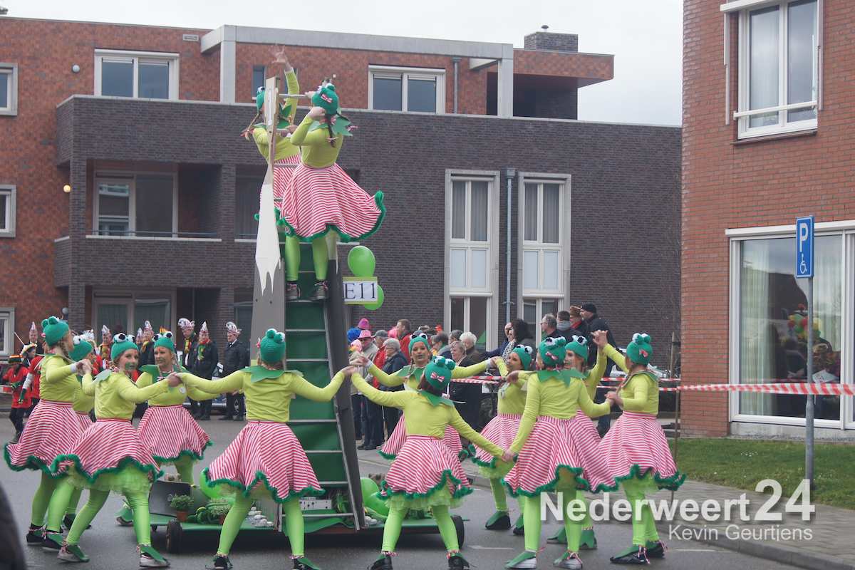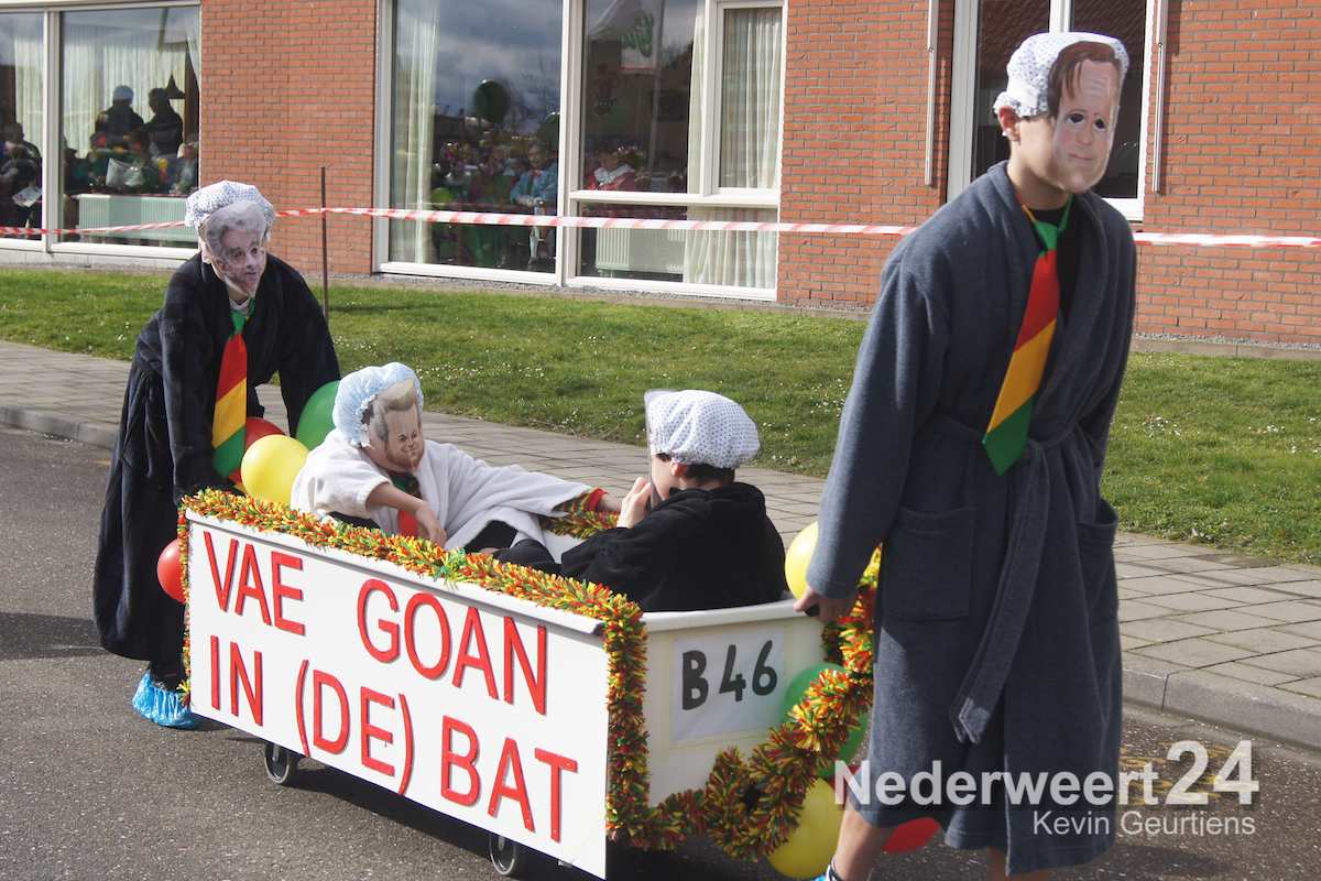 Van het Aerthijsplein vertrokken de wagens om 13:00 uur om het toegestormde publiek te vermaken met hun kleurrijke wagens. Een grote optocht want met 54 wagens hadden ze meer deelnemers dan de optocht in Nederweert.
