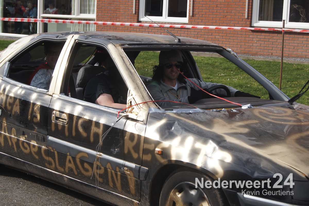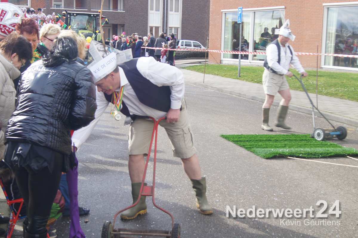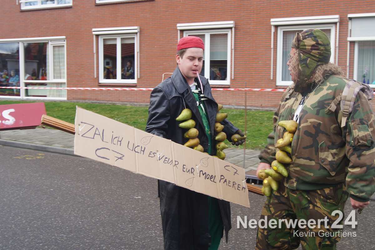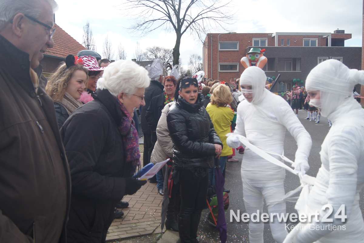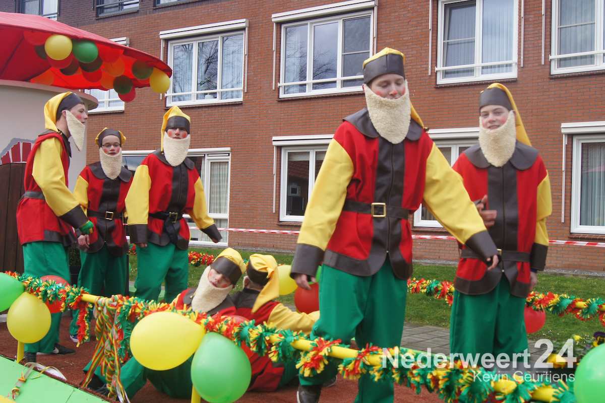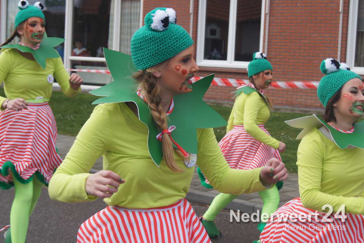 Van het Aerthijsplein vertrokken de wagens om 13:00 uur om het toegestormde publiek te vermaken met hun kleurrijke wagens. Een grote optocht want met 54 wagens hadden ze meer deelnemers dan de optocht in Nederweert.