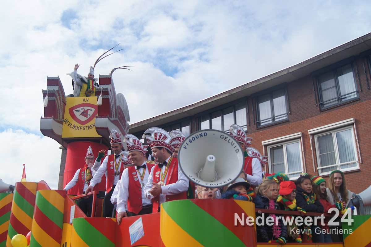 Maandagmiddag trokken 54 wagens door de straten van Ospel tijdens de grote carnavalsoptocht van VV de Vlikkestaekers.