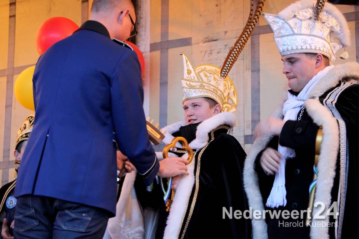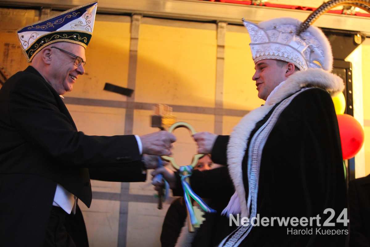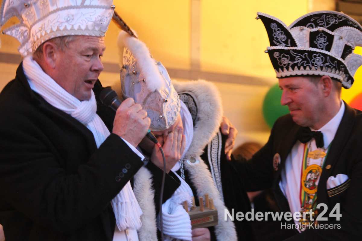 Daarna was het de beurt aan Prins Rob I. Hij hield het kort maar krachtig. Met weemoed en een brok in de keel gaf hij de sleutel terug aan de Opperpin, de Burgemeester van Nederweert.