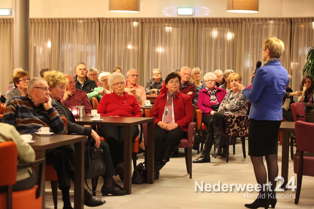 Mevrouw Riet van den Broek-Scheijven, directeur Zorg cluster Regio gaf haar visie over ouderen en zorg in de toekomst. Johanna en Andre Jacobs van zorgboerderij Bosserhof vertelden over hun dagelijkse bezigheden en de problemen waar ze tegen aan lopen. Van kippenboer naar zorgboer, geen kleine stap maar vol met passie. Zij bieden ouderen met een beperking een zinvolle dagbesteding aan.