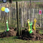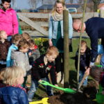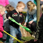 Kindercentrum Hummelhoeve bestaat 5 jaar en dat werd vanmorgen gevierd met de kinderen, ouders, grootouders en andere genodigden. Ter gelegenheid van dit jubileum was wethouder Mackus aanwezig om samen met de kinderen een boom te planten. Na een korte toespraak nam de wethouder de schop ter hand om samen met de kinderen de kersenboom te planten.