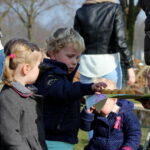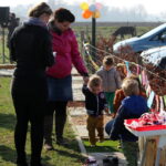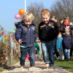 Op deze feestelijke en zonnige ochtend werd ook het blote voeten pad van Hummelhoeve in gebruik genomen. Hoewel het nog een beetje frisjes was gingen de schoenen en sokken uit om het nieuwe pad zelf te testen. Met wisselende emoties liepen de kinderen dapper over het afwisselende pad. Daarna was het tijd voor een koekje en de ouders gingen aan de koffie.