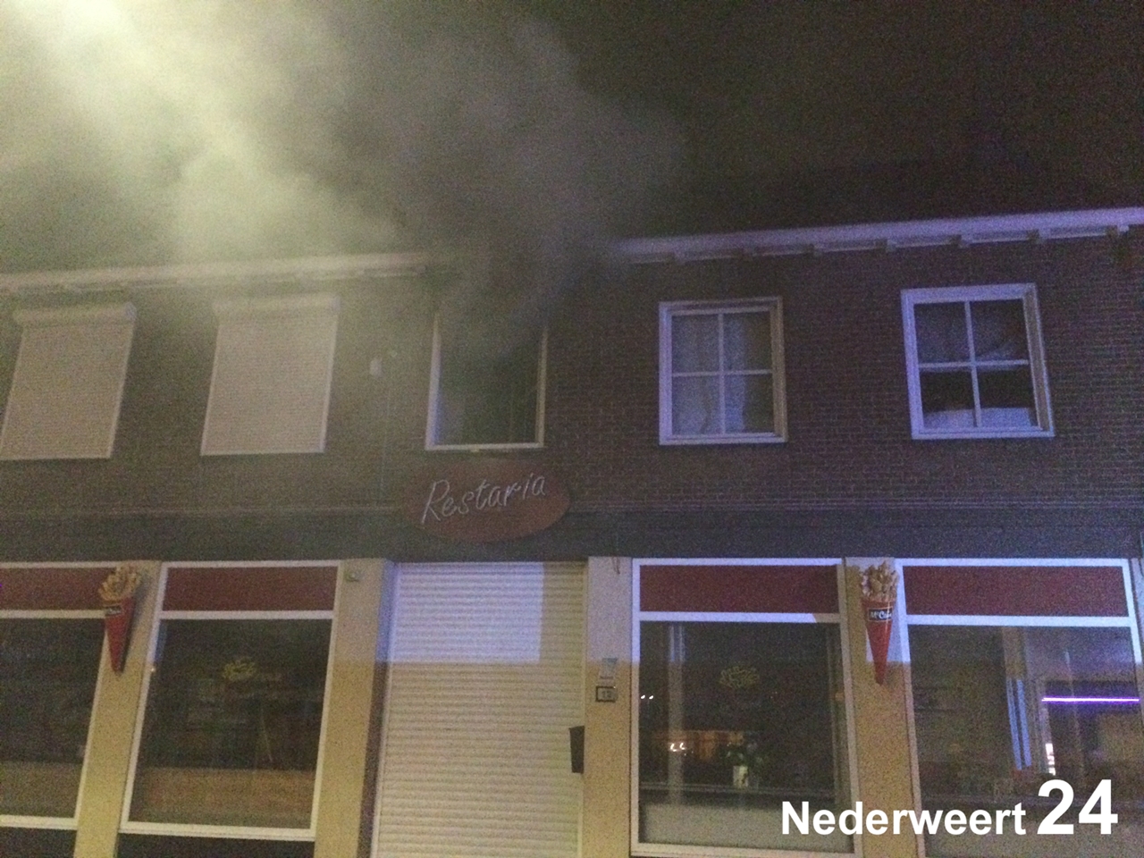 Zondagavond kort na half 10 zijn brandweer en ambulance gealarmeerd voor een brand in de Brugstraat te Nederweert. Boven “Restaria Chez Pierre” stond de bovenwoning in brand. De brandweer rukte met groot materieel uit. De brand zorgde voor een enorme rookontwikkeling in de Brugstraat. De hele Brugstraat werd afgezet.