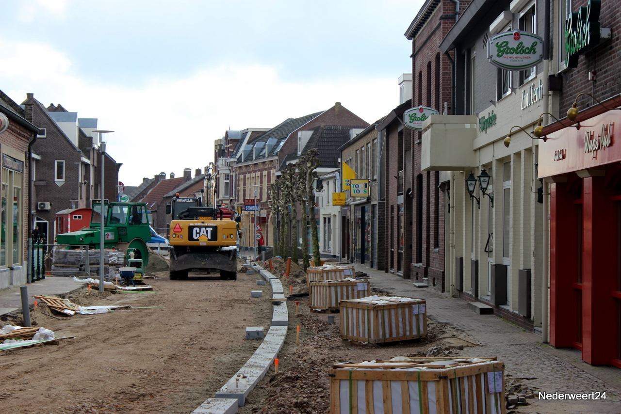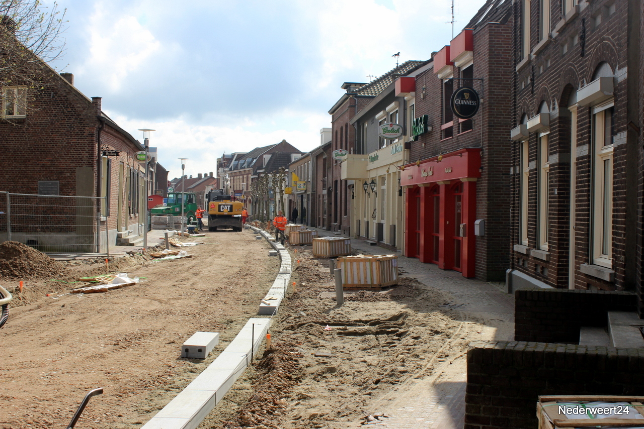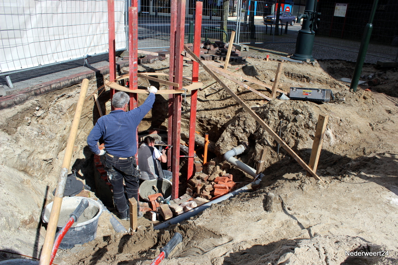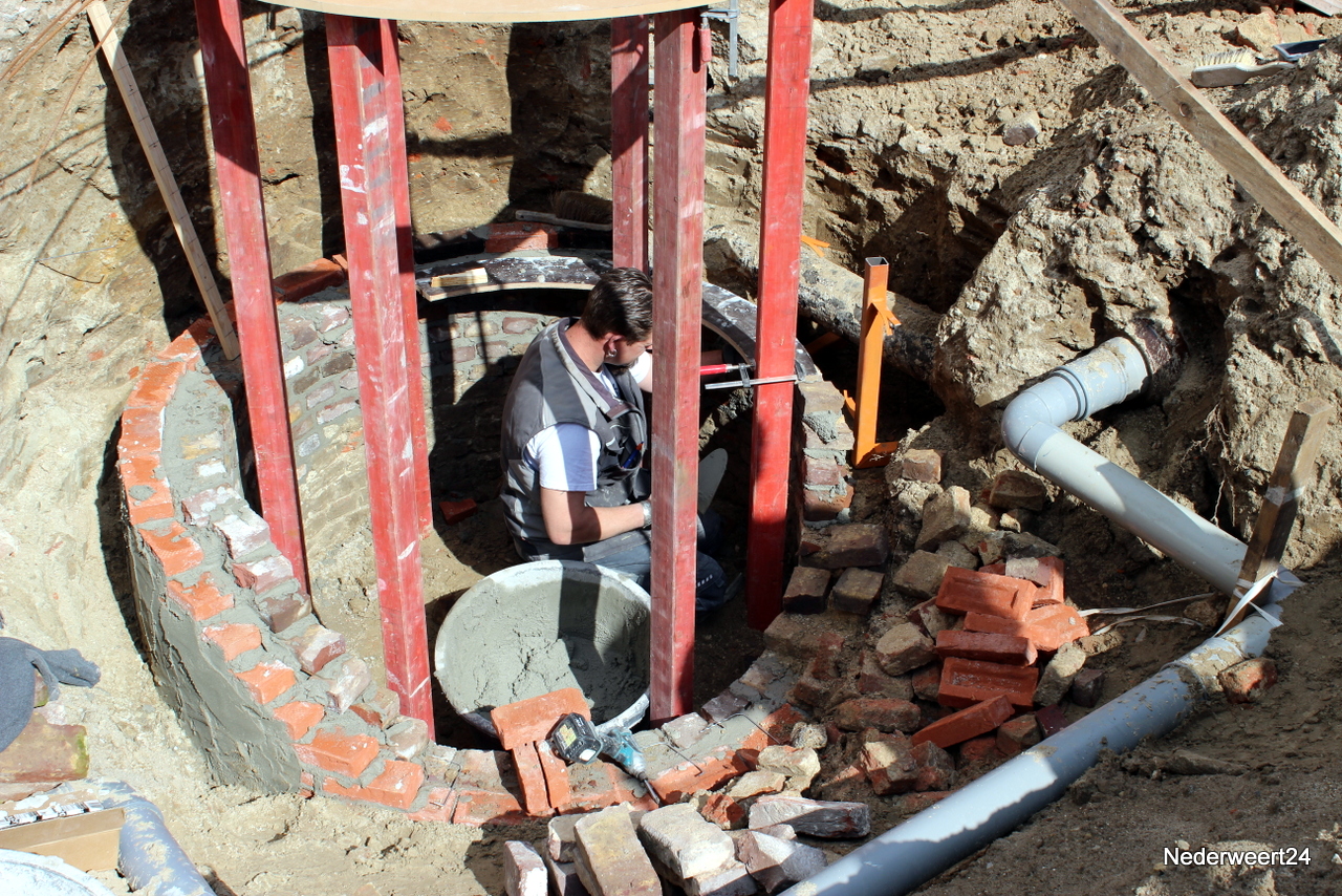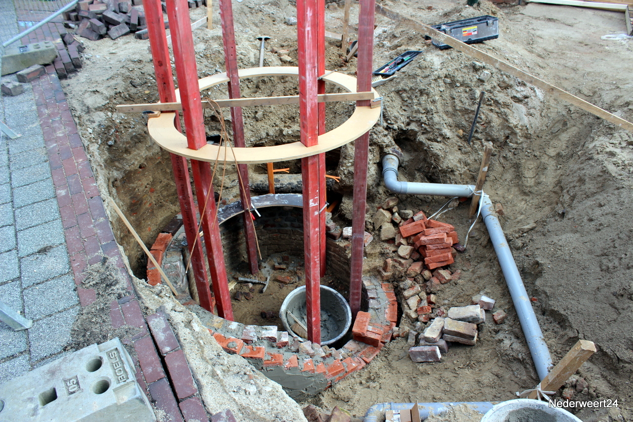 Na enige voorbereiding afgelopen vrijdag werd vandaag begonnen met het opmetselen van de gevonden waterput. Uit het stelwerk blijkt dat er ongeveer 1,5 meter opgemetseld moet worden. Hoe de put in het straatbeeld zichtbaar zal blijven is op dit moment nog niet helemaal duidelijk. Maandag is ook begonnen met het zetten van de nieuwe wegkanten. Volgens de planning zullen de werkzaamheden in fase 1 ongeveer 6 weken in beslag nemen. Fase 1 moet op 24 april klaar zijn.