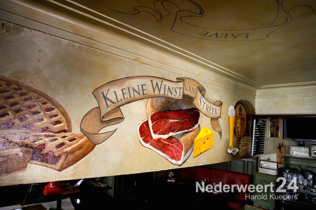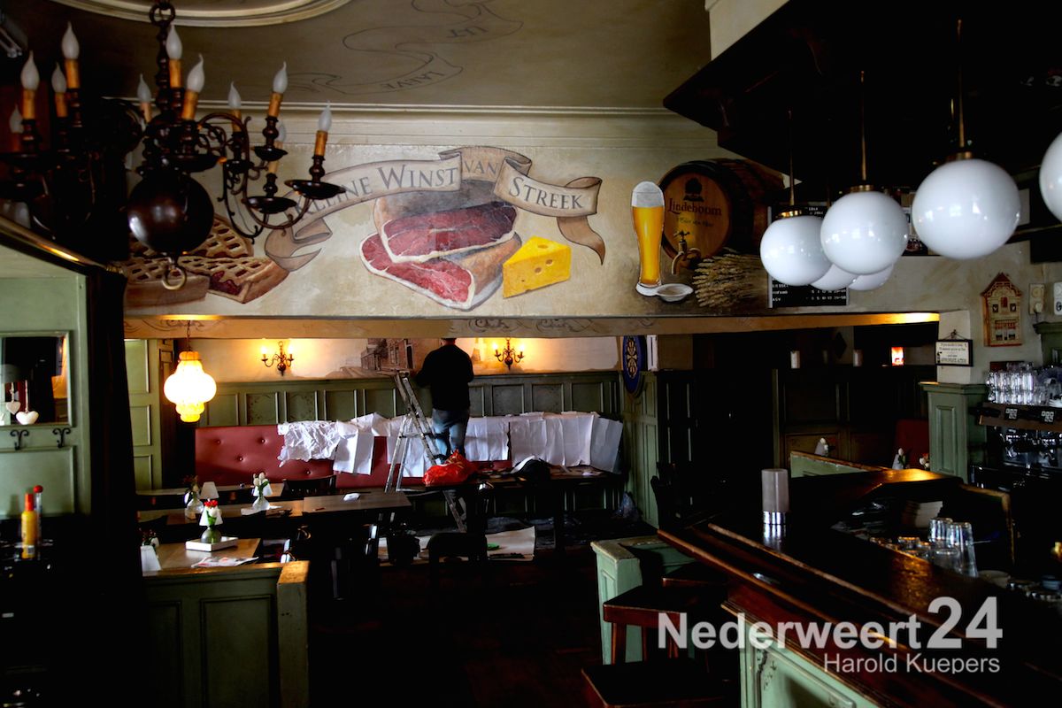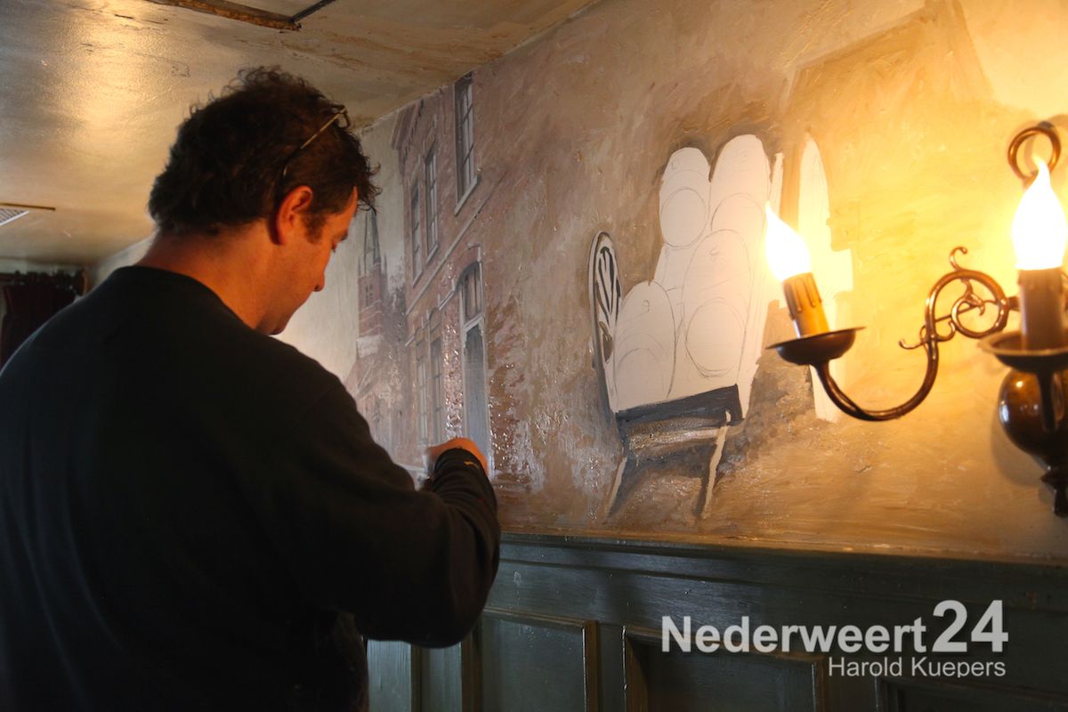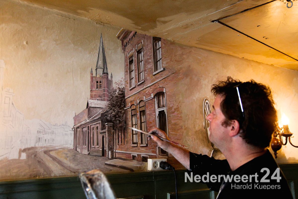 Schilder Leon Peeters uit Venlo was de afgelopen dagen veel in Nederweert te vinden. Hij is de architect van de nieuwe muurschilderingen bij Café De Kleine Winst in Nederweert.