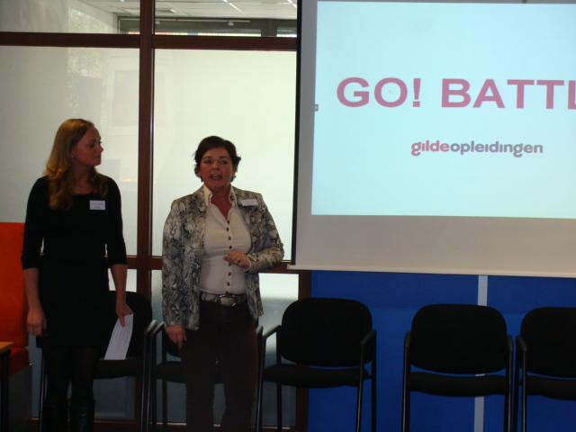 Go Battle9GO! Battle is al jaren een succesvol en bijzonder stageproject van Gilde Opleidingen voor het goede doel, waarin het verbinden en samenwerken voorop staan. Het laat studenten Assistent communicatiemedewerker en Marketingmedewerker ervaren waar het in het bedrijfsleven om draait. Lef tonen. Strak plannen. Afspraken nakomen. Verantwoord met geld omgaan. Tactische beslissingen nemen. De officiële aftrap was op dinsdag 8 april 2014.