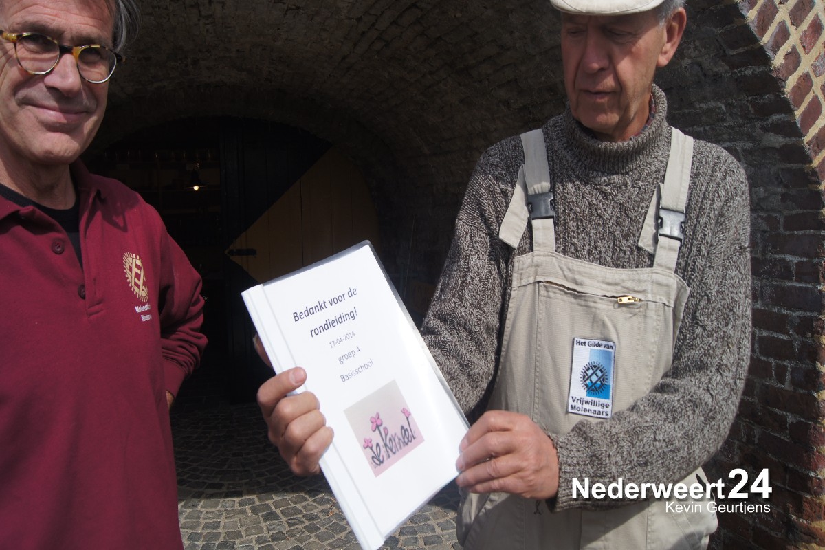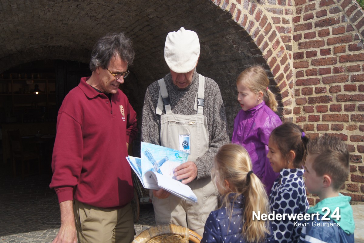 Vanmorgen kwamen de communiekantjes van basisschool de Kerneel uit Nederweert op bezoek bij de Korenbloemmolen in Ospel. De kinderen kregen door de molenaar een rondleiding.