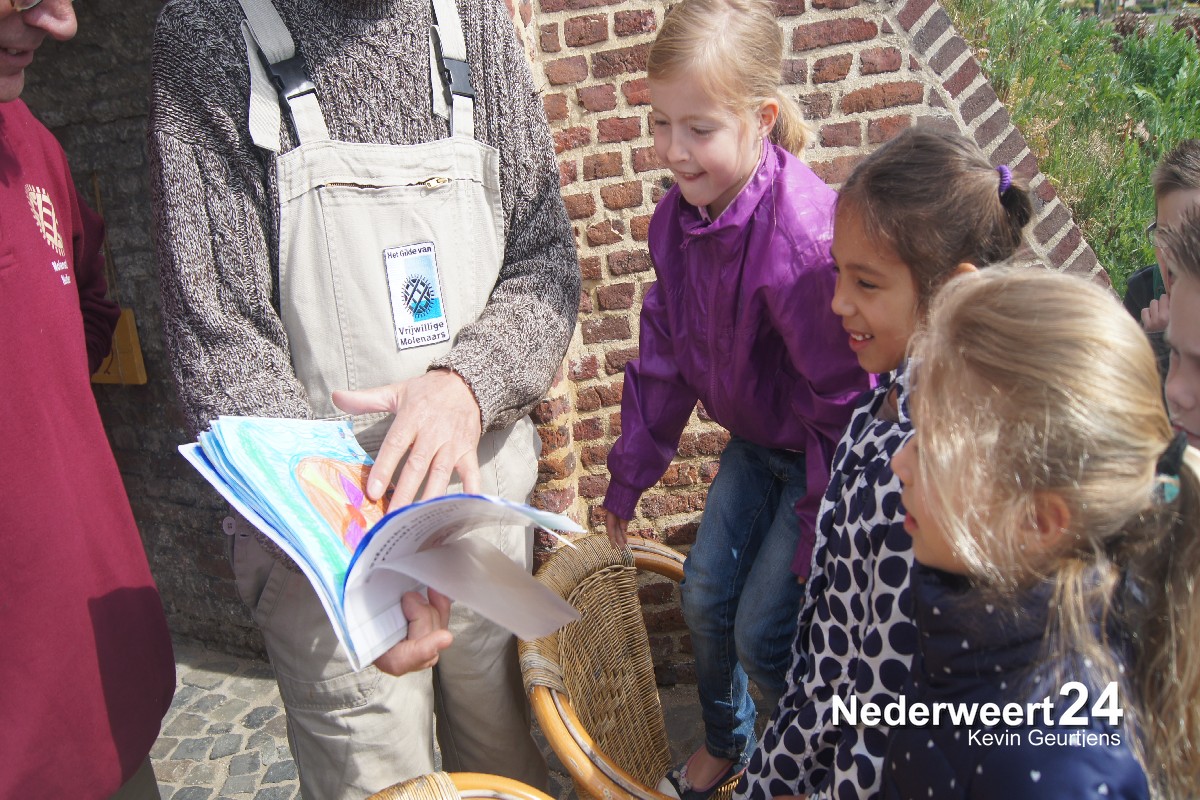 Er werden door de molenaar aan de kinderen verschillende vragen gesteld. Zoals ‘hoe groot zijn de wieken van de molen?‘. Een leuke, spannende en leerzame ochtend was het voor de kinderen. Als dank kreeg de molenaar een mooi boek met verschillende werkstukken die door de kinderen zelf zijn gemaakt.