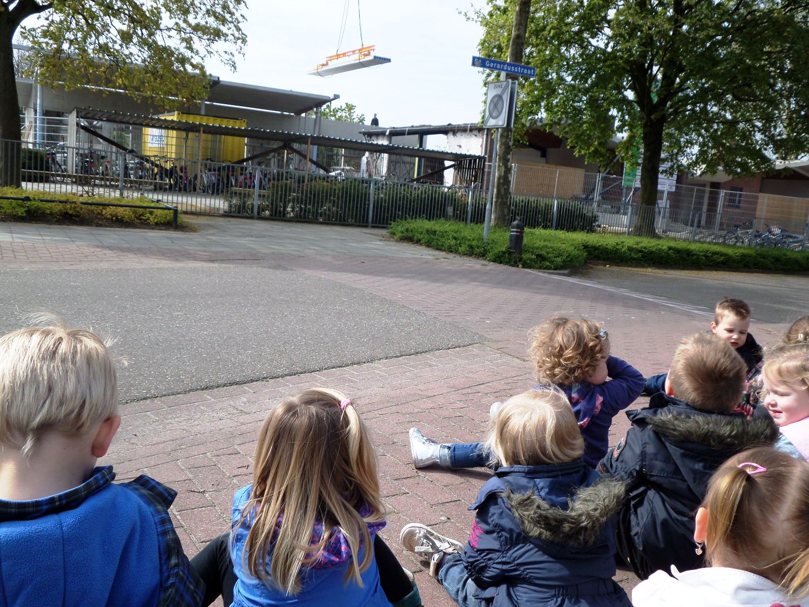 De peuters van Okido Dindj zijn een kijkje gaan nemen bij de school in Nederweert Eind die op dit moment verbouwt wordt.