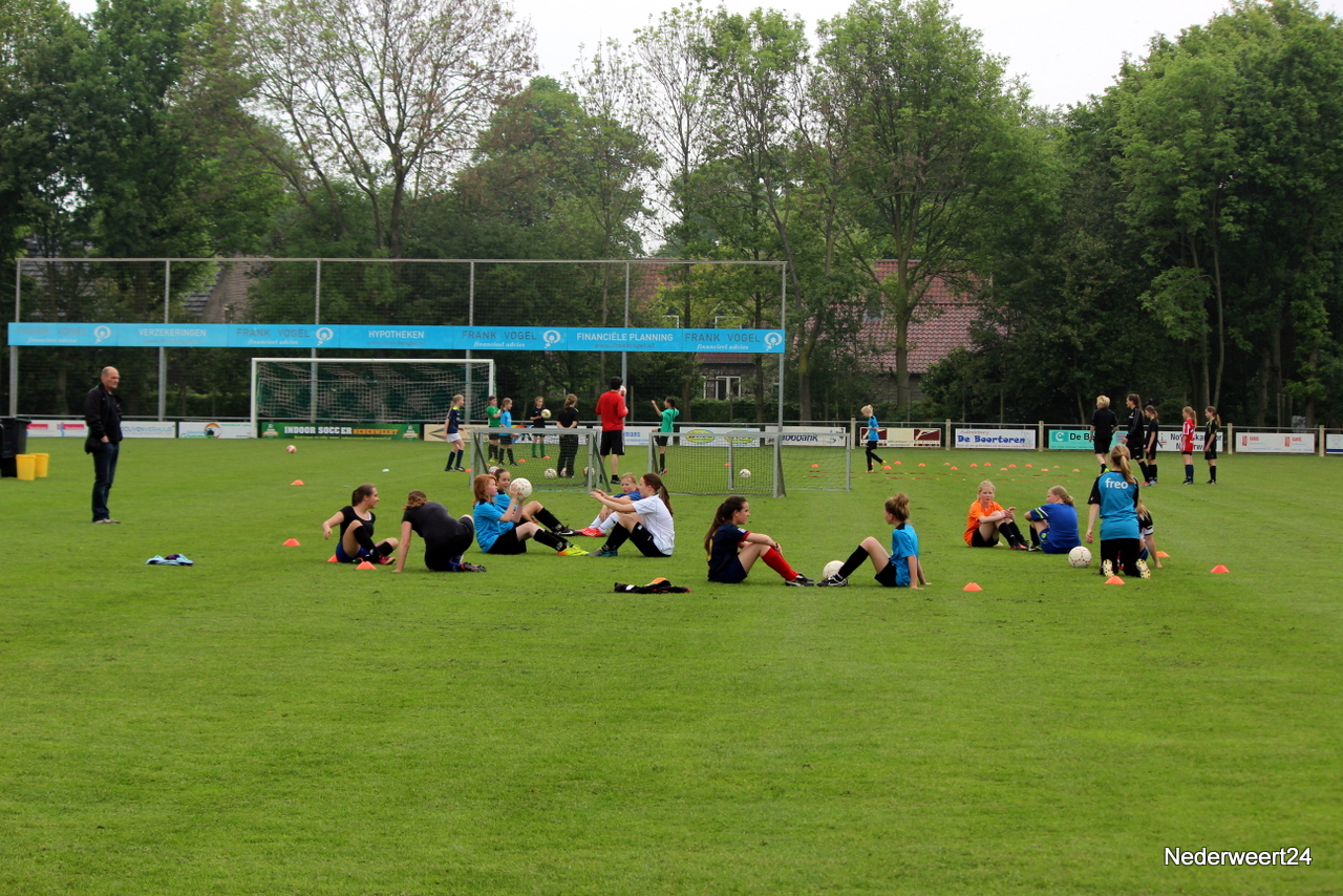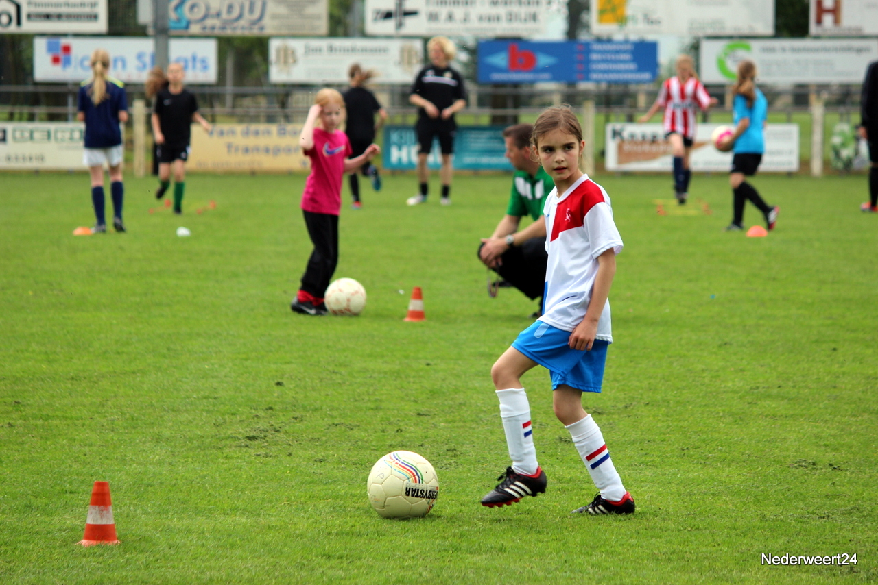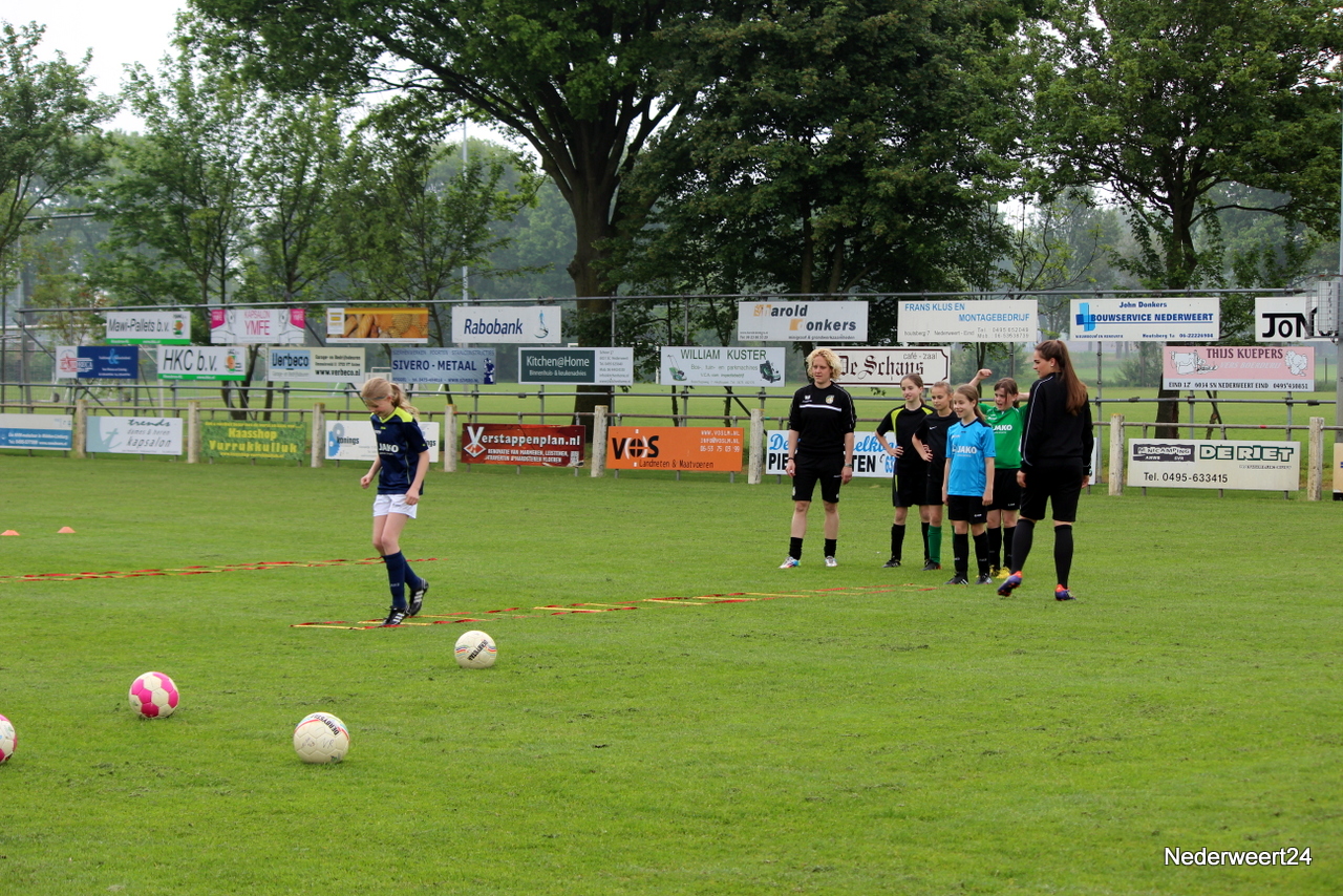Voetbal clinic bij Eindse BoysWoensdagmiddag 30 april stond sportpark Op Den Hoven weer helemaal in het teken van het damesvoetbal. De trainer en enkele speelsters van Fortuna Sittard waren naar Nederweert Eind gekomen om daar een voetbal clinic te verzorgen. Ongeveer 40 meisjes en jonge dames hadden zich voor de clinic opgegeven.