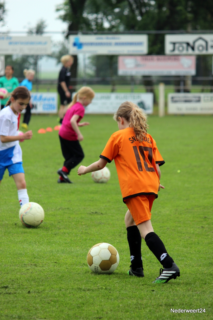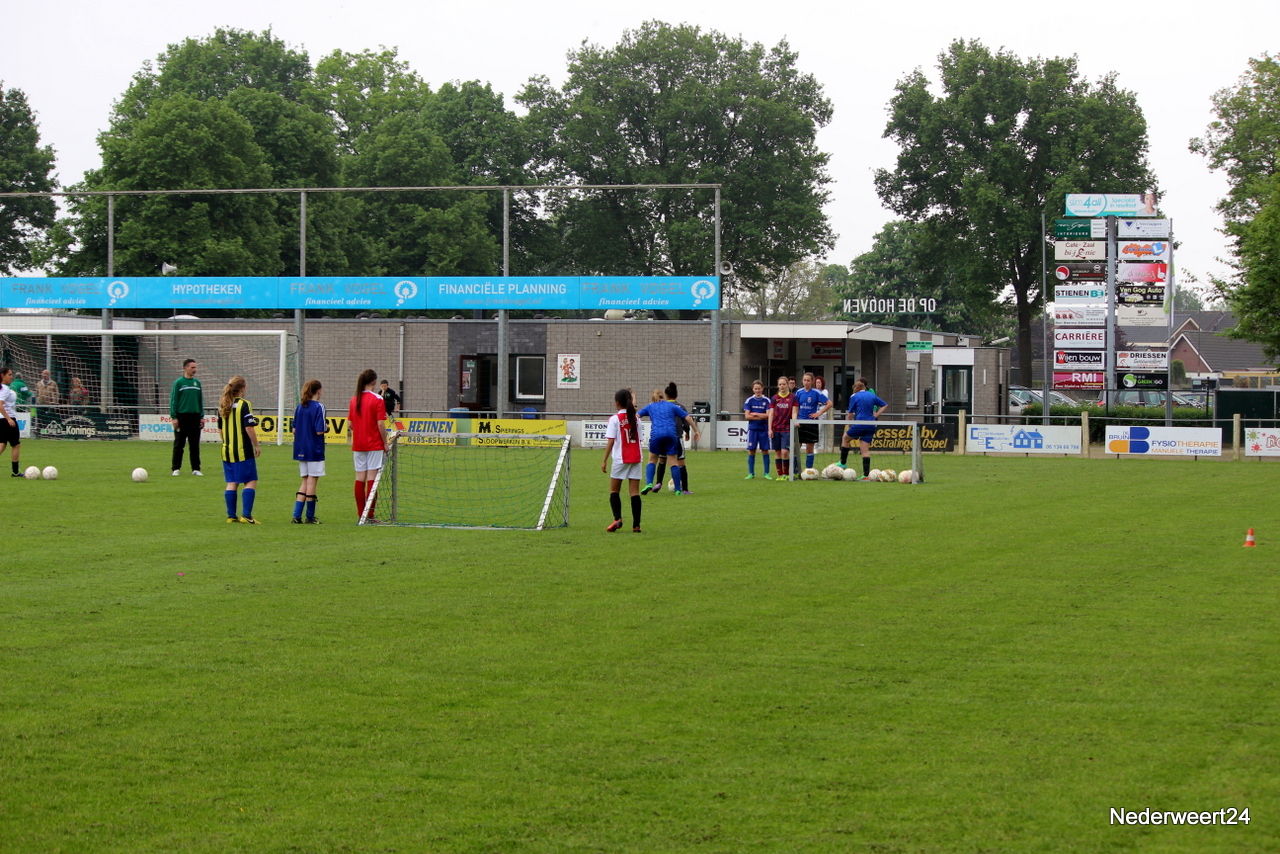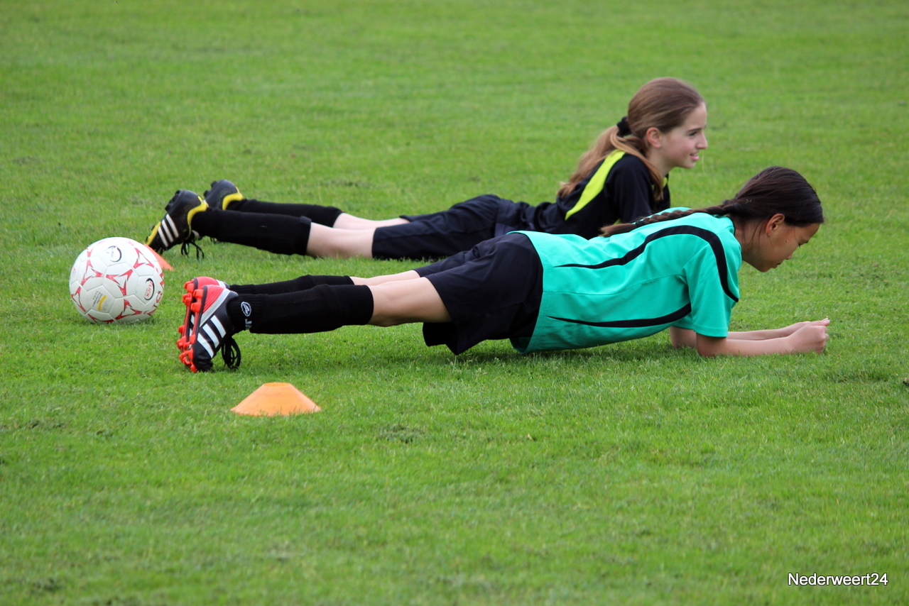 Voetbal clinic bij Eindse BoysWoensdagmiddag 30 april stond sportpark Op Den Hoven weer helemaal in het teken van het damesvoetbal. De trainer en enkele speelsters van Fortuna Sittard waren naar Nederweert Eind gekomen om daar een voetbal clinic te verzorgen. Ongeveer 40 meisjes en jonge dames hadden zich voor de clinic opgegeven.