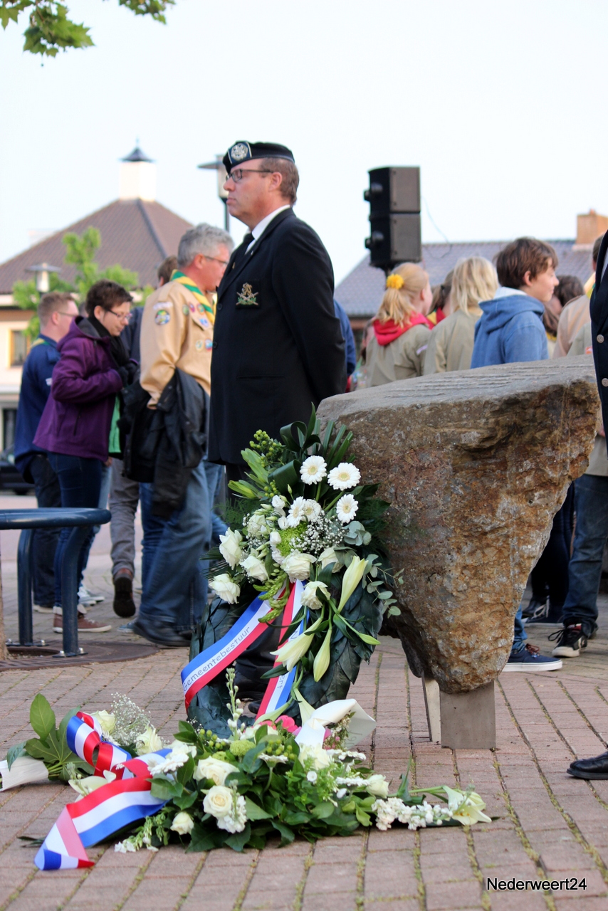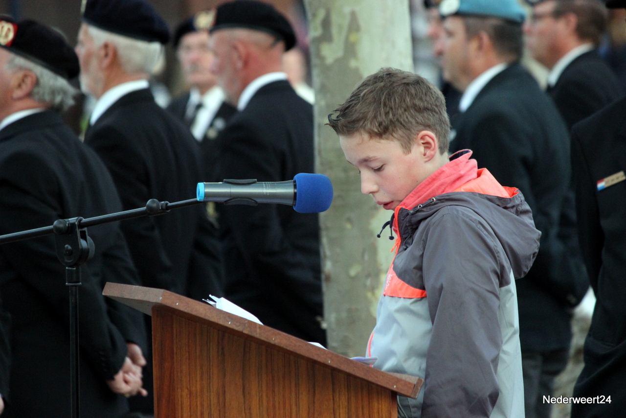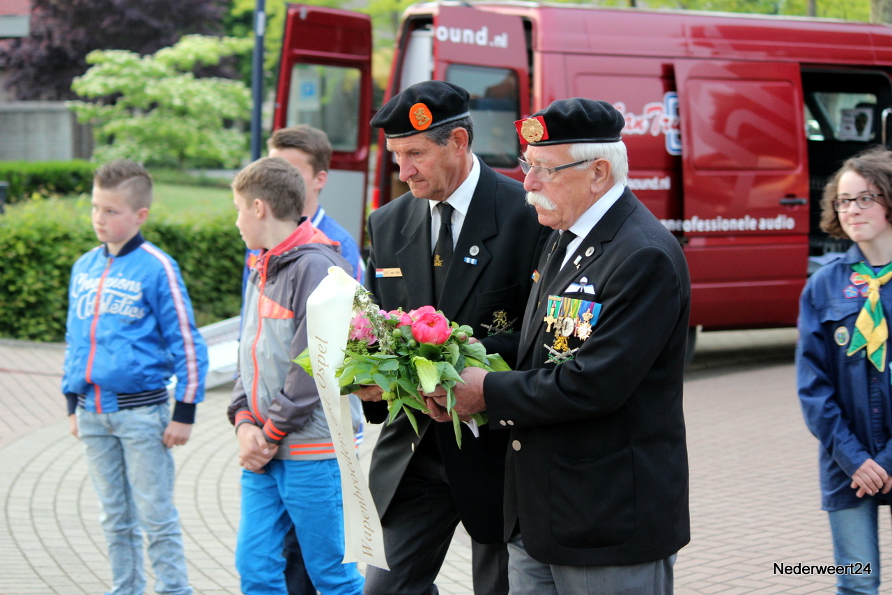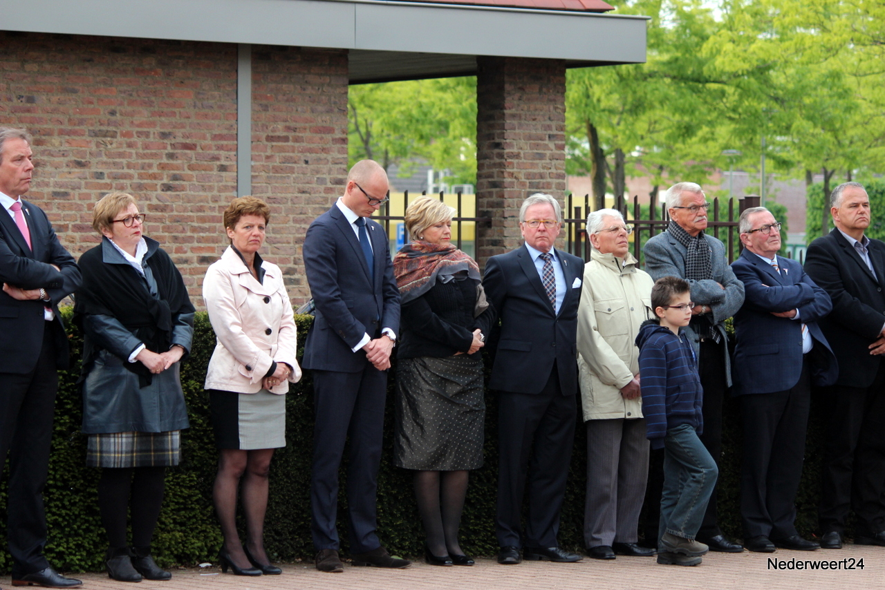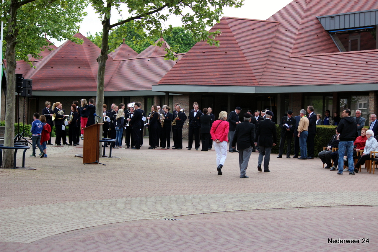 Zondagavond 4 mei 2014 werden ook in Nederweert de doden uit de tweede wereldoorlog herdacht. Op het Raadhuisplein waren genodigden en belangstellenden bij elkaar gekomen om dit moment mee te maken. Peter Stultjens hield namens het 4 en 5 mei comité een toespraak. Namens het gemeentebestuur sprak burgemeester Evers de aanwezigen toe. Ook de jeugd droeg haar steentje bij aan de plechtigheid. Drie scholieren van de Schrank in Ospel vertelden wat zij van oorlog vinden en concludeerden dat dit nooit meer mag gebeuren. Om klokslag 20.00 uur werd het 2 minuten stil.