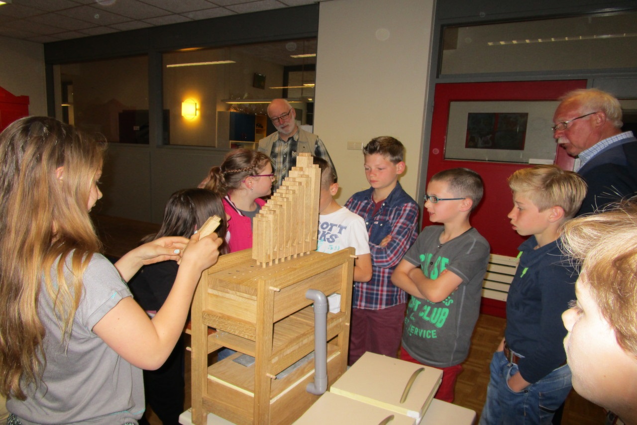 Door instructeur Win Janssen uit Roggel werd aan de kinderen van groep 7 een kindvriendelijke versie geschiedenis van het orgel gegeven. Wat doet een orgel nu precies, hoe het werkt en wat kun je er allemaal mee? Na een kort theoretisch verhaal voor de kinderen uit de klas van Juffrouw Kristel van Berlo, werd door de kinderen een bouwpakket van een echt orgeltje in elkaar gezet. Dit orgeltje bevat alle essentiële onderdelen van een orgel zoals een windvoorziening, windlade, toetsen en de orgelpijpjes.