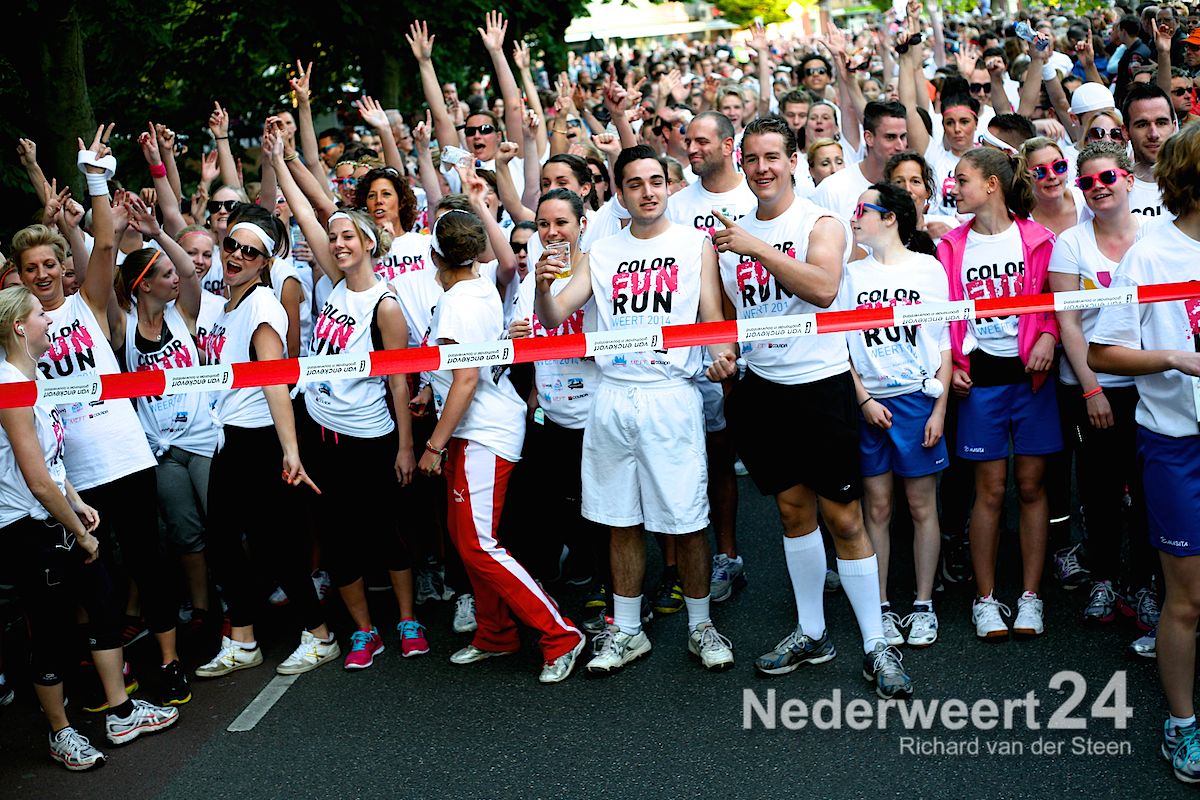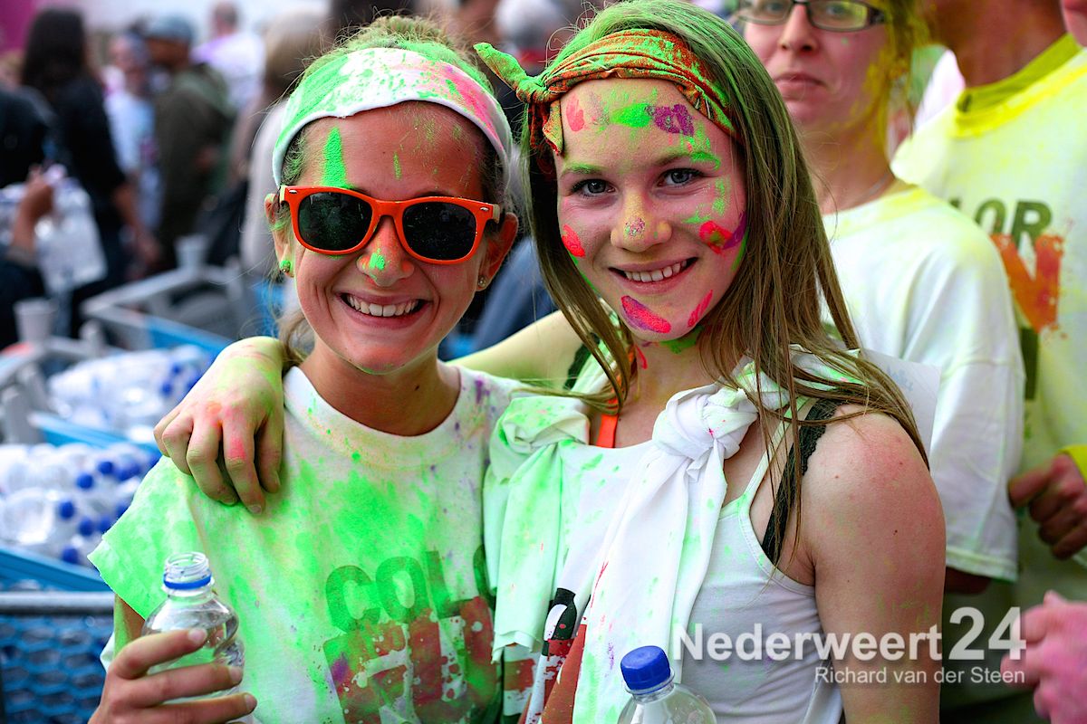 Het was lang wachten in de rij voordat de “Color Fun Run” in Weert van start ging maar met 1.500 “kleurlovers” en dit prachtige weer was het gezellig druk op de Oelemarkt.