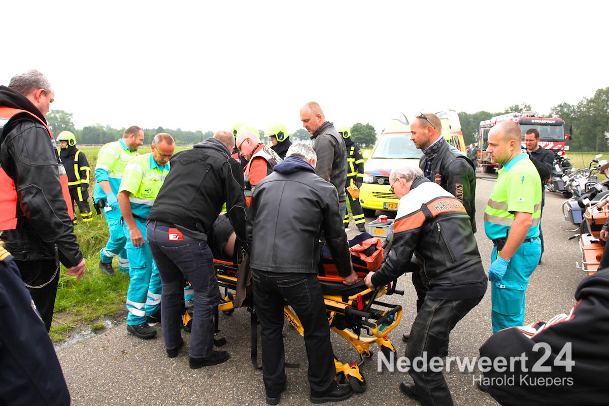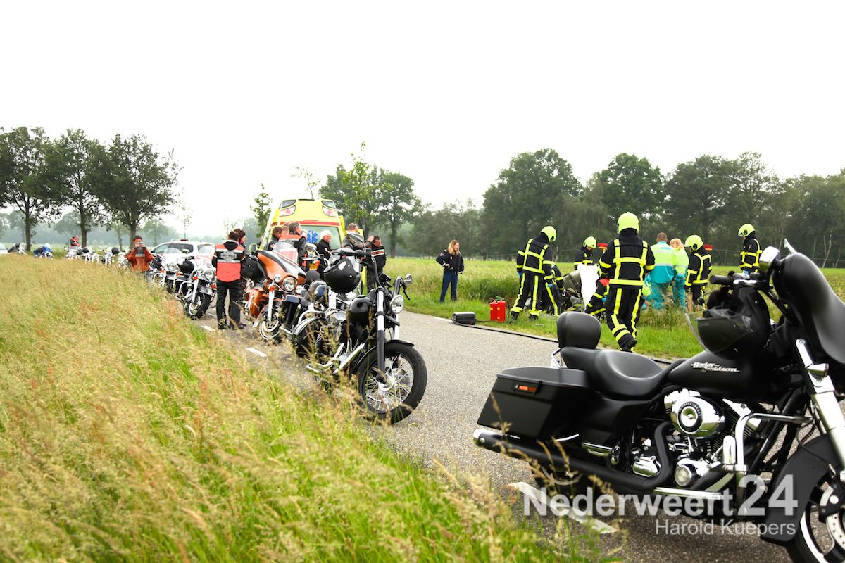 De motorrijders uit de groep hebben direct de bestuurder van de motor gestabiliseerd en vrouw en kind gerustgesteld. Nadat de ambulance ter plaatse was, hebben ze gebroederlijk de motorrijder over de sloot op het brancard getild.