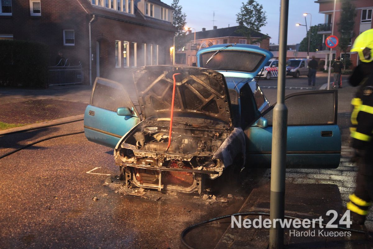 In de nacht van vrijdag op zaterdag is aan de Julianastraat op Budschop in Nederweert een auto volledig uitgebrand.
