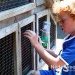 Ondanks de warmte was het goed toeven in de speelweide van t’ Zonnetje. Geïnteresseerde krijgen een uitgebreide rondleiding en persoonlijke kennismaking. Voor de kinderen zijn er natuurlijk speelmogelijkheden en de kleine kinderboerderij. Waar de ouders vooral benieuwd zijn naar de manier van werken zijn de kids vooral geïnteresseerd in het spannende konijnenhok met ondergronds kanaal naar de open ren.