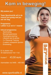 Juni 2014 is het juiste moment om te starten met het behalen van jou persoonlijke doelstelling! Bij SportivaLife zoeken ze namelijk 30 deelnemers die willen deelnemen aan het programma: “Kom in beweging“.