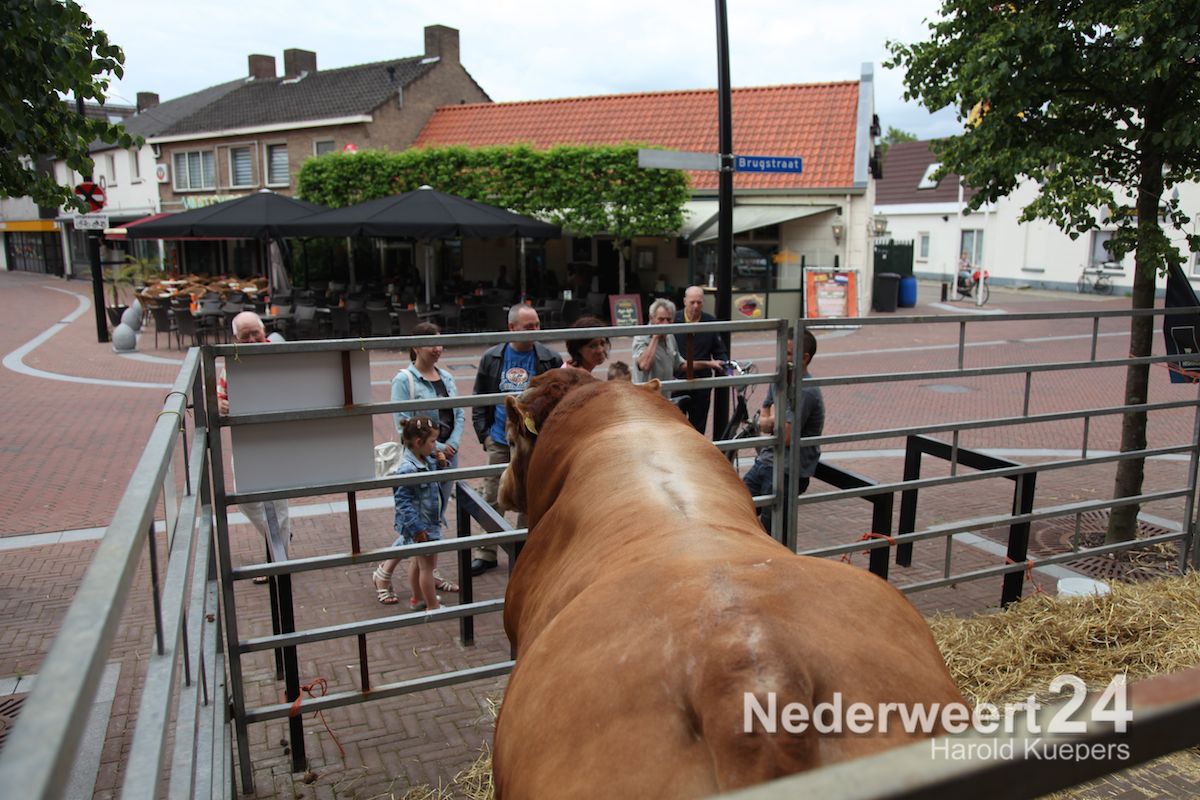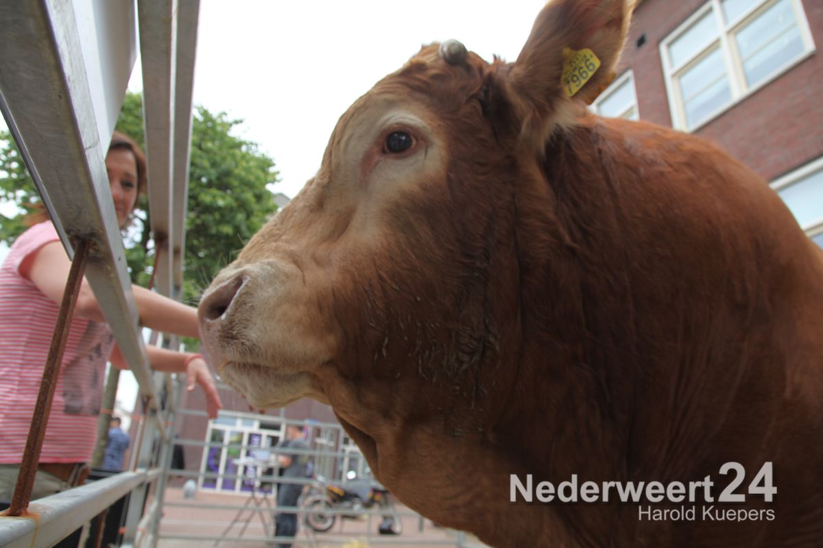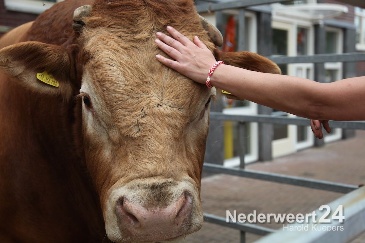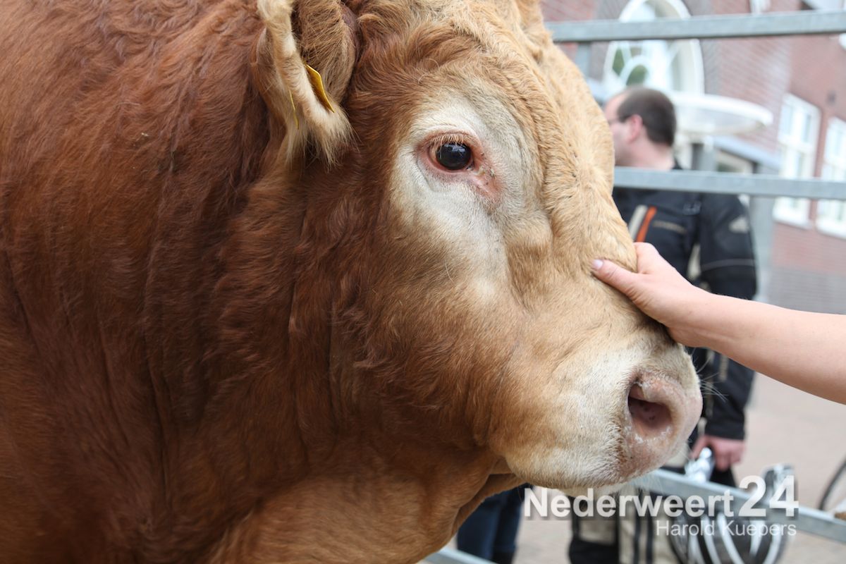 Bij Leon Moonen kon je een kijkje komen nemen op de boerderij waar zo’n 40 stuks Limousins rond lopen. Naast de veestapel in Nederweert verzorgen zijn dieren de begrazing van natuurterreinen in de grote peel. De oudste koe in de kudde heeft al de respectabele leeftijd van ruim 19 jaar. Op het horecaplein stond stier Abba, een Limousin stier van 8 jaar oud. En zo groot en zo woest als die eruit ziet, zo lief en knuffelig was hij als je hem over zijn kop streelde.