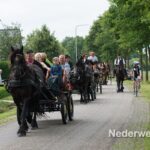Na de zegen van hulpbisschop de Jong trok de grote Koetsentocht vanuit Stramproy richting Weert. Ruim dertig koetsen maakten een lint van antieke en hedendaagse koetsen.