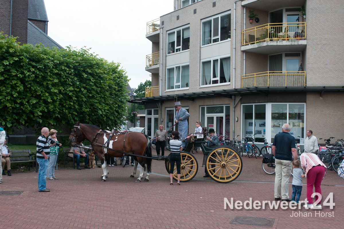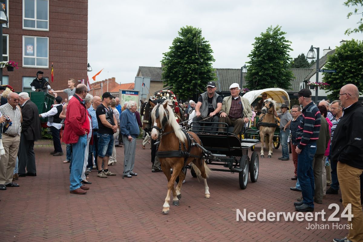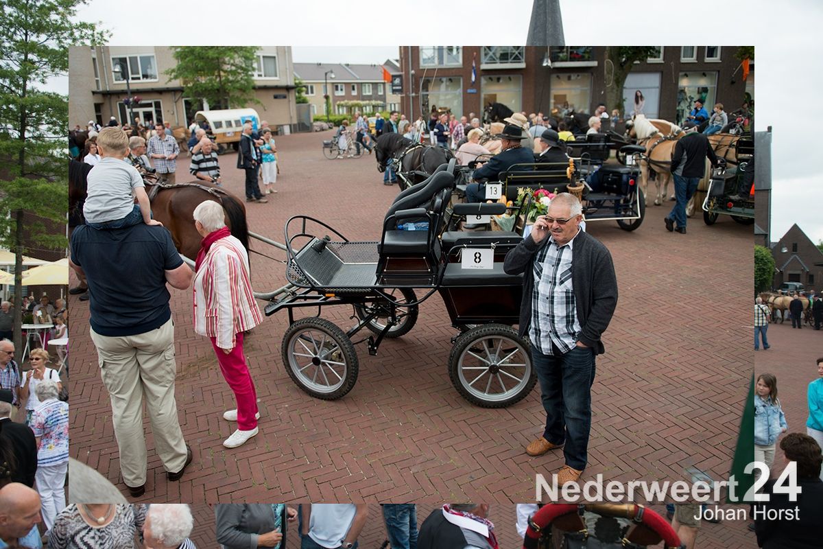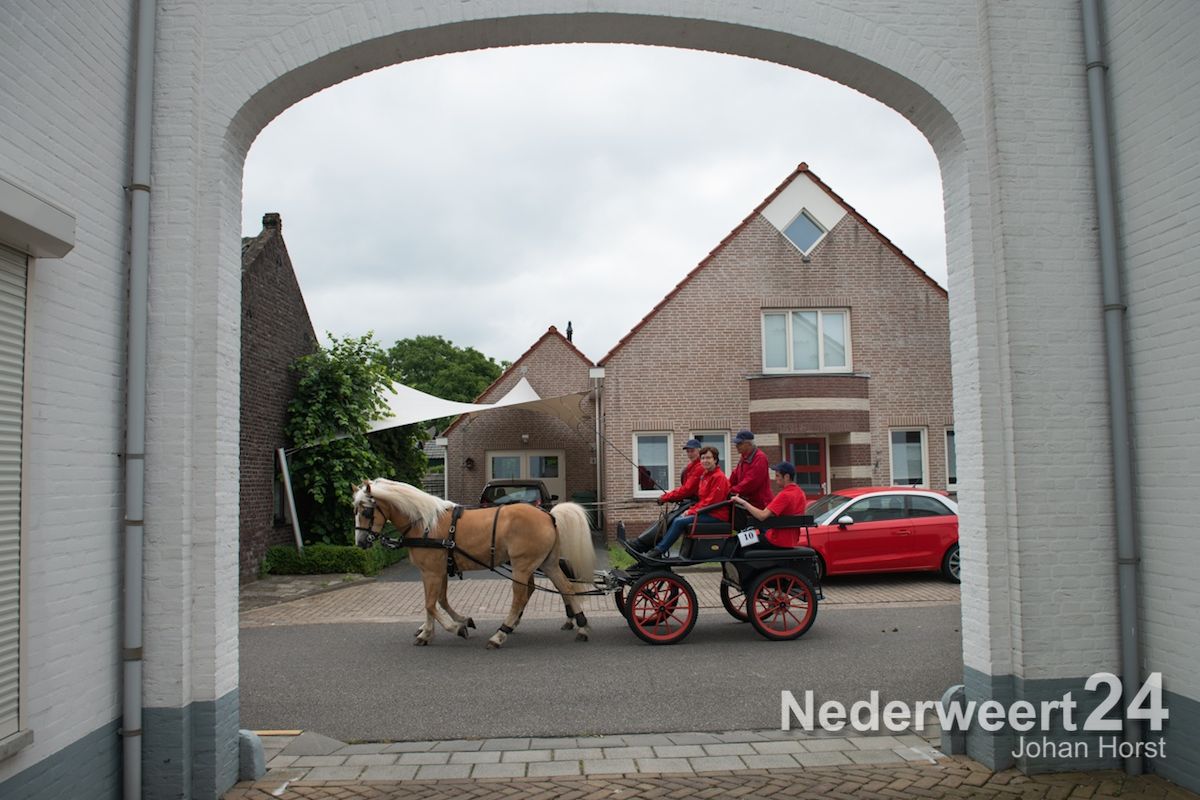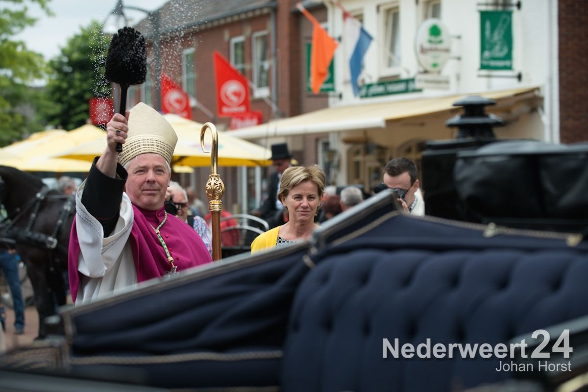 Na de zegen van hulpbisschop de Jong trok de grote Koetsentocht vanuit Stramproy richting Weert. Ruim dertig koetsen maakten een lint van antieke en hedendaagse koetsen.